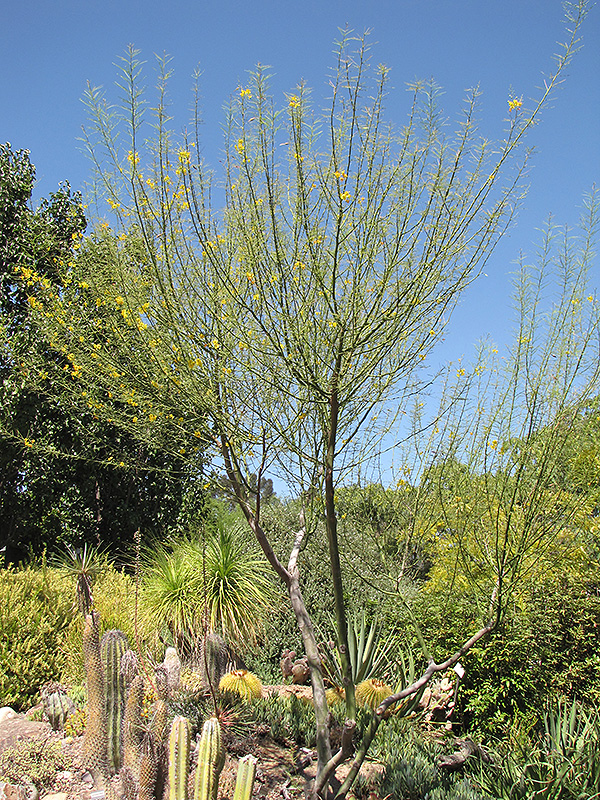Hardiness Zone: 6b Other Names: Parkinsonia Desert Museum Palo Verde Group/Class: Parkinsonia Hybrid Description: A fast growing large shrub or small tree with an upright, vase shaped habit; long lasting, large yellow flowers provide a stunning spring color display; a thornless, sterile hybrid that does not produce messy seed pods; drought tolerant once established Ornamental Features Desert Museum Palo Verde features showy panicles of yellow orchid-like flowers with red spots at the ends of the branches from early spring to early summer. It has attractive green evergreen foliage. The tiny oval pinnately compound leaves are highly ornamental and remain green throughout the winter. The smooth grayish green bark and dark green branches are extremely showy and add significant winter interest. Landscape Attributes Desert Museum Palo Verde is a multi-stemmed evergreen tree with an indistinguished habit of growth. It lends an extremely fine and delicate texture to the landscape composition which can make it a great accent feature on this basis alone. This tree will require occasional maintenance and upkeep, and should only be pruned after flowering to avoid removing any of the current season's flowers. Gardeners should be aware of the following characteristic(s) that may warrant special consideration; Desert Museum Palo Verde is recommended for the following landscape applications; Planting & Growing Desert Museum Palo Verde will grow to be about 20 feet tall at maturity, with a spread of 30 feet. It has a low canopy with a typical clearance of 4 feet from the ground, and is suitable for planting under power lines. It grows at a fast rate, and under ideal conditions can be expected to live for approximately 30 years. This tree should only be grown in full sunlight. It is very adaptable to both dry and moist growing conditions, but will not tolerate any standing water. It is considered to be drought-tolerant, and thus makes an ideal choice for xeriscaping or the moisture-conserving landscape. It is particular about its soil conditions, with a strong preference for clay, alkaline soils, and is able to handle environmental salt. It is highly tolerant of urban pollution and will even thrive in inner city environments. This particular variety is an interspecific hybrid.