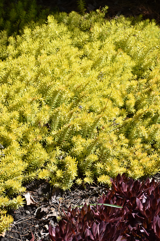 Hardiness Zone: 2b Other Names: Sedum reflexum Ornamental Features Angelina Stonecrop is smothered in stunning yellow star-shaped flowers at the ends of the stems from early to mid summer. Its attractive succulent needle-like leaves remain gold in color throughout the season. Landscape Attributes Angelina Stonecrop is a dense herbaceous perennial with a ground-hugging habit of growth. It brings an extremely fine and delicate texture to the garden composition and should be used to full effect. This plant will require occasional maintenance and upkeep, and is best cleaned up in early spring before it resumes active growth for the season. Deer don't particularly care for this plant and will usually leave it alone in favor of tastier treats. Gardeners should be aware of the following characteristic(s) that may warrant special consideration; Angelina Stonecrop is recommended for the following landscape applications; Planting & Growing Angelina Stonecrop will grow to be about 8 inches tall at maturity, with a spread of 12 inches. When grown in masses or used as a bedding plant, individual plants should be spaced approximately 10 inches apart. Its foliage tends to remain low and dense right to the ground. It grows at a fast rate, and under ideal conditions can be expected to live for approximately 10 years. As an herbaceous perennial, this plant will usually die back to the crown each winter, and will regrow from the base each spring. Be careful not to disturb the crown in late winter when it may not be readily seen! This plant does best in full sun to partial shade. It prefers dry to average moisture levels with very well-drained soil, and will often die in standing water. It is considered to be drought-tolerant, and thus makes an ideal choice for a low-water garden or xeriscape application. It is not particular as to soil pH, but grows best in poor soils, and is able to handle environmental salt. It is highly tolerant of urban pollution and will even thrive in inner city environments. This is a selected variety of a species not originally from North America. It can be propagated by division; however, as a cultivated variety, be aware that it may be subject to certain restrictions or prohibitions on propagation.