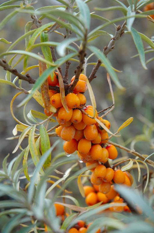 Golden Sweet™ Sea Buckthorn Hippophae rhamnoides 'Golden Sweet' Height: 8 feet Spread: 10 feet