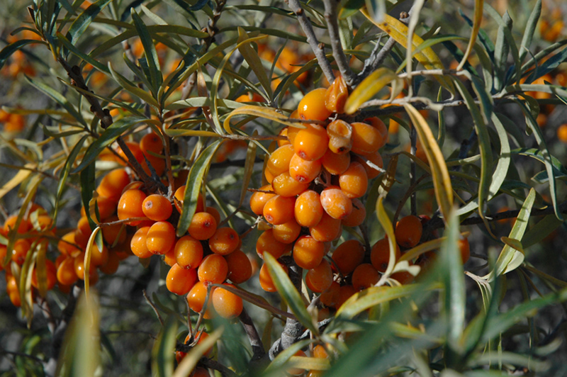 Hergo Sea Buckthorn Hippophae rhamnoides 'Hergo' Height: 15 feet Spread: 10 feet