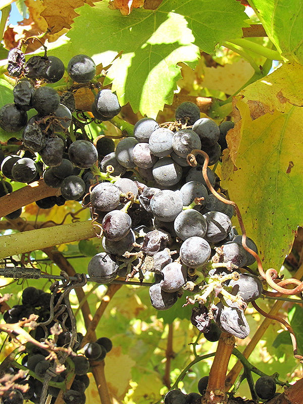 Hardiness Zone: 4a Description: A wonderful late ripening variety that features deep red grapes with a robust, spicy and fruity flavor; excellent wine-making selection; prefers hot and dry conditions; use as a screen for arbors or winding along fences, excellent wind canopy Edible Qualities Grenache Grape is a woody vine that is commonly grown for its edible qualities. It produces clusters of dark red round fruit which are usually ready for picking from early to mid fall. The fruits have a pleasant taste and a juicy texture. The fruit are most often used in the following ways: Features & Attributes Grenache Grape has rich green deciduous foliage on a plant with a spreading habit of growth. The lobed leaves turn yellow in fall. It produces abundant clusters of dark red grapes from early to mid fall. This is a dense multi-stemmed deciduous woody vine with a spreading, ground-hugging habit of growth. Its relatively coarse texture can be used to stand it apart from other landscape plants with finer foliage. This is a high maintenance plant that will require regular care and upkeep, and requires a special pruning regimen to reliably produce fruit; consult a specific reference guide or contact the store for proper pruning techniques. It is a good choice for attracting birds to your yard. Gardeners should be aware of the following characteristic(s) that may warrant special consideration; Aside from its primary use as an edible, Grenache Grape is sutiable for the following landscape applications; Planting & Growing Grenache Grape will grow to be about 20 feet tall at maturity, with a spread of 24 inches. As a climbing vine, it should be planted next to a fence, trellis or other rigid structure where it can be trained to grow upwards on it. It grows at a fast rate, and under ideal conditions can be expected to live for approximately 20 years. This is a self-pollinating variety, so it doesn't require a second plant nearby to set fruit. This woody vine is typically grown in a designated area of the yard because of its mature size and spread. It should only be grown in full sunlight. It prefers to grow in average to moist conditions, and shouldn't be allowed to dry out. It is not particular as to soil type or pH. It is somewhat tolerant of urban pollution. Consider applying a thick mulch around the root zone in winter to protect it in exposed locations or colder microclimates. This particular variety is an interspecific hybrid.