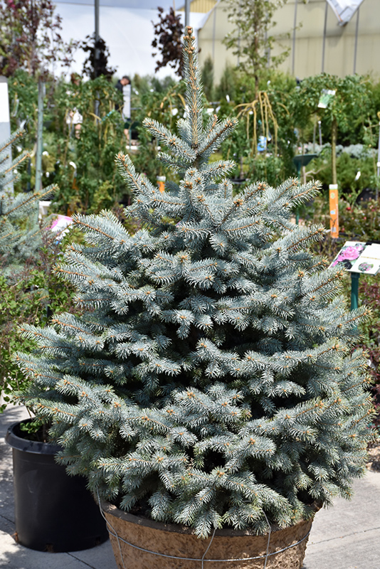 Hardiness Zone: 2b Other Names: Blue Colorado Spruce; Christmas Blue Spruce Description: An absolutely spectacular selection featuring vibrant blue needles with a silver cast, and a broad pyramidal habit of growth; very distinctive with great color retention; best used as a solitary accent or for color articulation in the landscape Ornamental Features Blue Diamond Blue Spruce is primarily valued in the landscape for its distinctively pyramidal habit of growth. It has attractive powder blue foliage with hints of silver. The needles are highly ornamental and remain powder blue throughout the winter. The brown fruits with hints of yellow are held in cones from late summer to early fall. The rough gray bark and brown branches add an interesting dimension to the landscape. Landscape Attributes Blue Diamond Blue Spruce is a dense evergreen tree with a strong central leader and a distinctive and refined pyramidal form. Its average texture blends into the landscape, but can be balanced by one or two finer or coarser trees or shrubs for an effective composition. This is a relatively low maintenance tree. When pruning is necessary, it is recommended to only trim back the new growth of the current season, other than to remove any dieback. Deer don't particularly care for this plant and will usually leave it alone in favor of tastier treats. It has no significant negative characteristics. Blue Diamond Blue Spruce is recommended for the following landscape applications; Planting & Growing Blue Diamond Blue Spruce will grow to be about 40 feet tall at maturity, with a spread of 16 feet. It has a low canopy, and should not be planted underneath power lines. It grows at a fast rate, and under ideal conditions can be expected to live for 80 years or more. This tree should only be grown in full sunlight. It is very adaptable to both dry and moist growing conditions, but will not tolerate any standing water. It is considered to be drought-tolerant, and thus makes an ideal choice for xeriscaping or the moisture-conserving landscape. It is not particular as to soil type or pH, and is able to handle environmental salt. It is highly tolerant of urban pollution and will even thrive in inner city environments. This is a selection of a native North American species.
