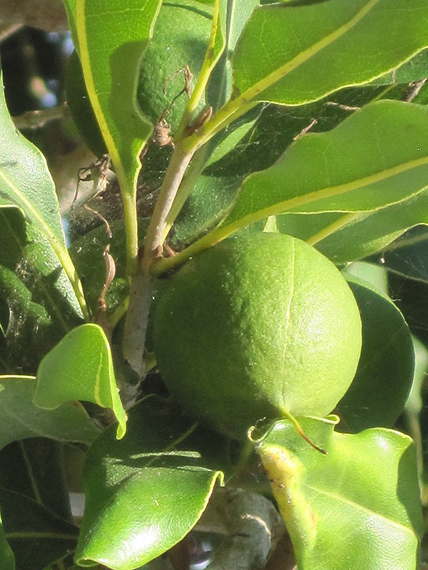Hardiness Zone: 9a Description: A medium sized, broadleaf evergreen tree featuring oblong, glossy leaves with wavy margins; sweet and fragrant, white flowers cascade from the branches; woody, edible round fruit are produced in the late fall; drought tolerant once established Edible Qualities Macadamia Nut is a medium-sized tree that is commonly grown for its edible qualities. It produces green round nuts in hard shells with creamy white flesh which are usually ready for picking from early to late fall. The nuts have an earthy taste. The nuts are most often used in the following ways: Features & Attributes Macadamia Nut features showy racemes of lightly-scented white flowers with shell pink overtones at the ends of the branches from early to late spring. It has green evergreen foliage. The glossy oval leaves remain green throughout the winter. It produces green nuts from early to late fall. The fruit can be messy if allowed to drop on the lawn or walkways, and may require occasional clean-up. This is an evergreen tree with a more or less rounded form. Its average texture blends into the landscape, but can be balanced by one or two finer or coarser trees or shrubs for an effective composition. This is a relatively low maintenance plant, and may require the occasional pruning to look its best. It is a good choice for attracting birds and squirrels to your yard. Gardeners should be aware of the following characteristic(s) that may warrant special consideration; Aside from its primary use as an edible, Macadamia Nut is sutiable for the following landscape applications; Planting & Growing Macadamia Nut will grow to be about 30 feet tall at maturity, with a spread of 20 feet. It has a high canopy with a typical clearance of 5 feet from the ground, and is suitable for planting under power lines. It grows at a medium rate, and under ideal conditions can be expected to live for approximately 20 years. This plant is typically grown in a designated edibles garden. It should only be grown in full sunlight. It does best in average to evenly moist conditions, but will not tolerate standing water. It is not particular as to soil type or pH. It is somewhat tolerant of urban pollution. This species is not originally from North America.