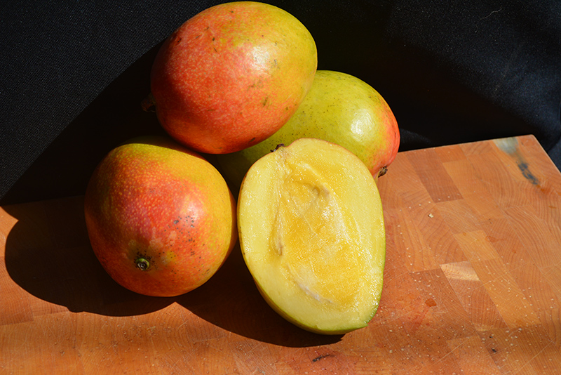 Hardiness Zone: 9b Description: A widely cultivated selection presenting long, deep green, glossy lanceolate leaves and panicles of white and pink, fragrant flowers; golden yellow fruit with deep red blushes are sweet and juicy, great for a variety of applications, from savory to sweet Edible Qualities Haden Mango is a medium-sized tree that is typically grown for its edible qualities. It produces yellow oval fruit (technically 'drupes') with a scarlet blush and orange flesh which are usually ready for picking in early summer. The fruits have a sweet taste with a juicy texture and a sweet fragrance. The fruit are most often used in the following ways: Features & Attributes Haden Mango has attractive dark green foliage with light green veins which emerges coppery-bronze in spring on a tree with a round habit of growth. The glossy pointy leaves are highly ornamental and remain dark green throughout the winter. This is an evergreen tree with a more or less rounded form. Its average texture blends into the landscape, but can be balanced by one or two finer or coarser trees or shrubs for an effective composition. This is a relatively low maintenance plant, and may require the occasional pruning to look its best. It is a good choice for attracting birds and bees to your yard. It has no significant negative characteristics. Aside from its primary use as an edible, Haden Mango is sutiable for the following landscape applications; Planting & Growing Haden Mango will grow to be about 30 feet tall at maturity, with a spread of 15 feet. It has a high canopy of foliage that sits well above the ground, and is suitable for planting under power lines. As it matures, the lower branches of this tree can be strategically removed to create a high enough canopy to support unobstructed human traffic underneath. It grows at a medium rate, and under ideal conditions can be expected to live for approximately 20 years. This is a self-pollinating variety, so it doesn't require a second plant nearby to set fruit. This plant is typically grown in a designated edibles garden. It should only be grown in full sunlight. It does best in average to evenly moist conditions, but will not tolerate standing water. It is not particular as to soil pH, but grows best in sandy soils. It is somewhat tolerant of urban pollution. This is a selected variety of a species not originally from North America.; however, as a cultivated variety, be aware that it may be subject to certain restrictions or prohibitions on propagation. Haden Mango is a good choice for the edible garden, but it is also well-suited for use in outdoor pots and containers. Because of its height, it is often used as a 'thriller' in the 'spiller-thriller-filler' container combination; plant it near the center of the pot, surrounded by smaller plants and those that spill over the edges. It is even sizeable enough that it can be grown alone in a suitable container. Note that when grown in a container, it may not perform exactly as indicated on the tag - this is to be expected. Also note that when growing plants in outdoor containers and baskets, they may require more frequent waterings than they would in the yard or garden.