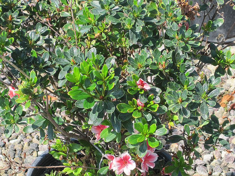Hardiness Zone: 7b Other Names: Variegated Dogwood Azalea Description: A standout variety presenting stunning coral-pink blooms with irregular white edges and red blotches; creates an impressive border or low screen; absolutely must have well-drained, highly acidic and organic soil Ornamental Features Dogwood Variegated Azalea features showy clusters of coral-pink trumpet-shaped flowers with white overtones and a red blotch at the ends of the branches from mid spring to early summer. It has bluish-green evergreen foliage which emerges light green in spring. The glossy oval leaves remain bluish-green throughout the winter. Landscape Attributes Dogwood Variegated Azalea is an open multi-stemmed evergreen shrub with an upright spreading habit of growth. Its average texture blends into the landscape, but can be balanced by one or two finer or coarser trees or shrubs for an effective composition. This is a relatively low maintenance shrub, and should only be pruned after flowering to avoid removing any of the current season's flowers. It has no significant negative characteristics. Dogwood Variegated Azalea is recommended for the following landscape applications; Planting & Growing Dogwood Variegated Azalea will grow to be about 4 feet tall at maturity, with a spread of 4 feet. It tends to be a little leggy, with a typical clearance of 1 foot from the ground. It grows at a slow rate, and under ideal conditions can be expected to live for 40 years or more. This shrub does best in full sun to partial shade. You may want to keep it away from hot, dry locations that receive direct afternoon sun or which get reflected sunlight, such as against the south side of a white wall. It requires an evenly moist well-drained soil for optimal growth, but will die in standing water. It is very fussy about its soil conditions and must have rich, acidic soils to ensure success, and is subject to chlorosis (yellowing) of the foliage in alkaline soils. It is somewhat tolerant of urban pollution, and will benefit from being planted in a relatively sheltered location. Consider applying a thick mulch around the root zone in winter to protect it in exposed locations or colder microclimates. This particular variety is an interspecific hybrid. Dogwood Variegated Azalea makes a fine choice for the outdoor landscape, but it is also well-suited for use in outdoor pots and containers. With its upright habit of growth, it is best suited for use as a 'thriller' in the 'spiller-thriller-filler' container combination; plant it near the center of the pot, surrounded by smaller plants and those that spill over the edges. It is even sizeable enough that it can be grown alone in a suitable container. Note that when grown in a container, it may not perform exactly as indicated on the tag - this is to be expected. Also note that when growing plants in outdoor containers and baskets, they may require more frequent waterings than they would in the yard or garden.