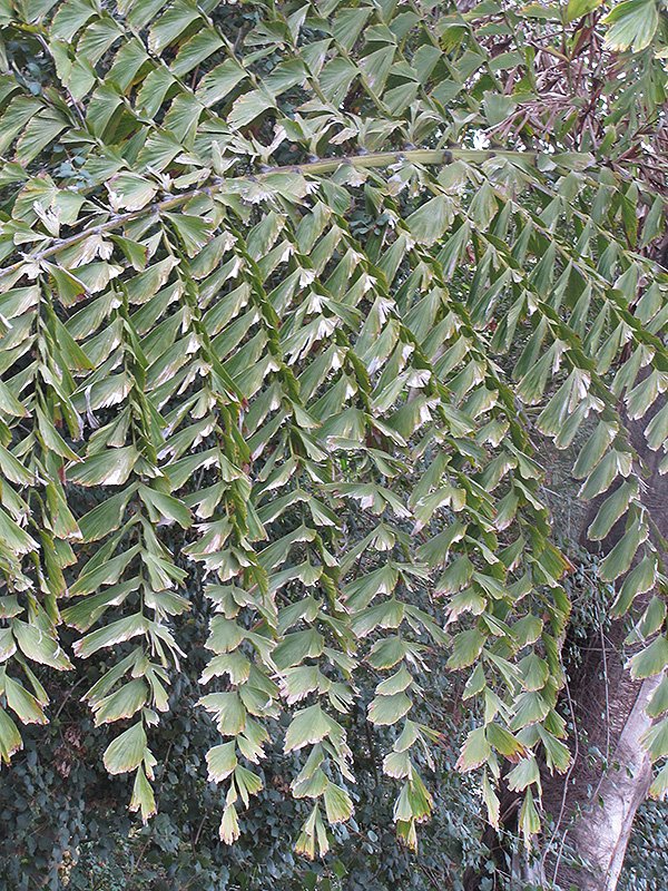Hardiness Zone: 9b Other Names: Giant Fishtail Palm, Caryota obtusa Description: This beautiful palm typically forms a single, large, blackened trunk, topped with evenly spaced, large bi-pinnate leaves, creating a stunning lacey pattern in several tones of green; flowers and fruits only once, then dies; protect from wind Ornamental Features Thai Mountain Giant Palm has attractive green evergreen foliage on a tree with an arching habit of growth. The enormous twisted fan-shaped bipinnately compound leaves are highly ornamental and remain green throughout the winter. The rough dark brown bark is extremely showy and adds significant winter interest. Landscape Attributes Thai Mountain Giant Palm is an evergreen tree with a strong central leader and a shapely form and gracefully arching branches. Its relatively coarse texture can be used to stand it apart from other landscape plants with finer foliage. This is a high maintenance tree that will require regular care and upkeep, and should not require much pruning, except when necessary, such as to remove dieback. Gardeners should be aware of the following characteristic(s) that may warrant special consideration; Thai Mountain Giant Palm is recommended for the following landscape applications; Planting & Growing Thai Mountain Giant Palm will grow to be about 40 feet tall at maturity, with a spread of 20 feet. It has a high canopy of foliage that sits well above the ground, and should not be planted underneath power lines. As it matures, the lower branches of this tree can be strategically removed to create a high enough canopy to support unobstructed human traffic underneath. It grows at a slow rate, and under ideal conditions can be expected to live for approximately 30 years. This tree does best in full sun to partial shade. It does best in average to evenly moist conditions, but will not tolerate standing water. It is particular about its soil conditions, with a strong preference for rich, acidic soils, and is able to handle environmental salt. It is somewhat tolerant of urban pollution, and will benefit from being planted in a relatively sheltered location. This species is not originally from North America, and parts of it are known to be toxic to humans and animals, so care should be exercised in planting it around children and pets.. Thai Mountain Giant Palm is a fine choice for the yard, but it is also a good selection for planting in outdoor pots and containers. Because of its height, it is often used as a 'thriller' in the 'spiller-thriller-filler' container combination; plant it near the center of the pot, surrounded by smaller plants and those that spill over the edges. It is even sizeable enough that it can be grown alone in a suitable container. Note that when grown in a container, it may not perform exactly as indicated on the tag - this is to be expected. Also note that when growing plants in outdoor containers and baskets, they may require more frequent waterings than they would in the yard or garden.