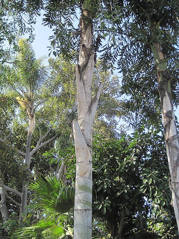 Hardiness Zone: 8b Other Names: Caryota obtusa var. aequatorialis Description: This beautiful palm forms a single trunk, topped with large, evenly spaced, dull green bi-pinnate leaves, creating a stunning lacey pattern; flowers and fruits only once, then dies; provide adequate space, as it grows quite large Ornamental Features Giant Mountain Fishtail Palm has attractive grayish green evergreen foliage on a tree with the bulk of the canopy held atop a towering trunk or stem. The enormous fan-shaped bipinnately compound leaves are highly ornamental and remain grayish green throughout the winter. It is draped in stunning clusters of chartreuse flowers hanging below the branches from early to mid summer. The smooth white bark is extremely showy and adds significant winter interest. Landscape Attributes Giant Mountain Fishtail Palm is an evergreen tree with a strong central leader and a towering form, with a high canopy of foliage concentrated at the top of the plant. Its relatively coarse texture can be used to stand it apart from other landscape plants with finer foliage. This is a high maintenance tree that will require regular care and upkeep, and should not require much pruning, except when necessary, such as to remove dieback. Gardeners should be aware of the following characteristic(s) that may warrant special consideration; Giant Mountain Fishtail Palm is recommended for the following landscape applications; Planting & Growing Giant Mountain Fishtail Palm will grow to be about 60 feet tall at maturity, with a spread of 30 feet. It has a high canopy of foliage that sits well above the ground, and should not be planted underneath power lines. As it matures, the lower branches of this tree can be strategically removed to create a high enough canopy to support unobstructed human traffic underneath. It grows at a fast rate, and under ideal conditions can be expected to live for approximately 30 years. This tree does best in full sun to partial shade. It does best in average to evenly moist conditions, but will not tolerate standing water. It is particular about its soil conditions, with a strong preference for rich, acidic soils. It is somewhat tolerant of urban pollution, and will benefit from being planted in a relatively sheltered location. This species is not originally from North America, and parts of it are known to be toxic to humans and animals, so care should be exercised in planting it around children and pets.. Giant Mountain Fishtail Palm is a fine choice for the yard, but it is also a good selection for planting in outdoor pots and containers. Because of its height, it is often used as a 'thriller' in the 'spiller-thriller-filler' container combination; plant it near the center of the pot, surrounded by smaller plants and those that spill over the edges. It is even sizeable enough that it can be grown alone in a suitable container. Note that when grown in a container, it may not perform exactly as indicated on the tag - this is to be expected. Also note that when growing plants in outdoor containers and baskets, they may require more frequent waterings than they would in the yard or garden.