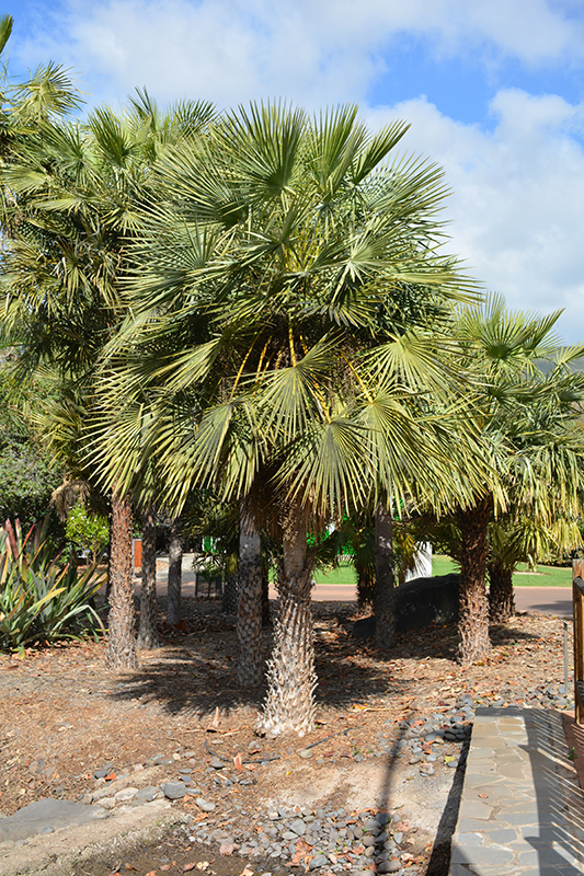 Hardiness Zone: 9a Other Names: Wax Palm Description: A stunning, tall and showy palm for the landscape, featuring a graceful, thin trunk topped with a dense crown of large, arching, fan shaped fronds; attractive cream flowers are followed by clusters of black fruits; leaf bases are persistent when young Ornamental Features Caranday Palm has attractive grayish green foliage with silver undersides on a tree with the bulk of the canopy held atop a towering trunk or stem. The large spiny palmate leaves are highly ornamental and remain grayish green throughout the winter. It features dainty clusters of creamy white flowers held atop the branches in mid spring. The fruits are showy dark green drupes which fade to black over time, which are displayed in mid summer. The smooth gray bark is extremely showy and adds significant winter interest. Landscape Attributes Caranday Palm is an open evergreen tree with a strong central leader and a towering form, with a high canopy of foliage concentrated at the top of the plant. Its relatively fine texture sets it apart from other landscape plants with less refined foliage. This is a relatively low maintenance tree, and should not require much pruning, except when necessary, such as to remove dieback. Gardeners should be aware of the following characteristic(s) that may warrant special consideration; Caranday Palm is recommended for the following landscape applications; Planting & Growing Caranday Palm will grow to be about 40 feet tall at maturity, with a spread of 12 feet. It has a high canopy of foliage that sits well above the ground, and should not be planted underneath power lines. As it matures, the lower branches of this tree can be strategically removed to create a high enough canopy to support unobstructed human traffic underneath. It grows at a slow rate, and under ideal conditions can be expected to live for 40 years or more. This tree should only be grown in full sunlight. It does best in average to evenly moist conditions, but will not tolerate standing water. It is not particular as to soil type or pH, and is able to handle environmental salt. It is somewhat tolerant of urban pollution. This species is not originally from North America. It can be propagated by cuttings.