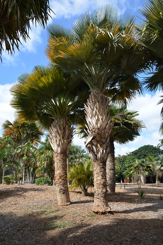 Hardiness Zone: 9b Other Names: Yarey Palm, Wax Palm Description: A tall and showy palm for the landscape, featuring a stout, thick trunk topped with a dense crown of stiff, deeply segmented, fan shaped leaves; attractive cream flowers are followed by clusters of black fruits Ornamental Features Bailey's Fan Palm has attractive green evergreen foliage on a tree with the bulk of the canopy held atop a towering trunk or stem. The large glossy palmate leaves are highly ornamental and remain green throughout the winter. It features dainty clusters of creamy white flowers held atop the branches in mid spring. The fruits are showy dark green drupes which fade to black over time, which are displayed in mid summer. The smooth gray bark is extremely showy and adds significant winter interest. Landscape Attributes Bailey's Fan Palm is an open evergreen tree with a strong central leader and a towering form, with a high canopy of foliage concentrated at the top of the plant. Its relatively fine texture sets it apart from other landscape plants with less refined foliage. This is a relatively low maintenance tree, and should not require much pruning, except when necessary, such as to remove dieback. Gardeners should be aware of the following characteristic(s) that may warrant special consideration; Bailey's Fan Palm is recommended for the following landscape applications; Planting & Growing Bailey's Fan Palm will grow to be about 50 feet tall at maturity, with a spread of 15 feet. It has a high canopy of foliage that sits well above the ground, and should not be planted underneath power lines. As it matures, the lower branches of this tree can be strategically removed to create a high enough canopy to support unobstructed human traffic underneath. It grows at a slow rate, and under ideal conditions can be expected to live for 60 years or more. This tree should only be grown in full sunlight. It is very adaptable to both dry and moist growing conditions, but will not tolerate any standing water. It is not particular as to soil type or pH, and is able to handle environmental salt. It is somewhat tolerant of urban pollution. This species is not originally from North America. It can be propagated by cuttings.