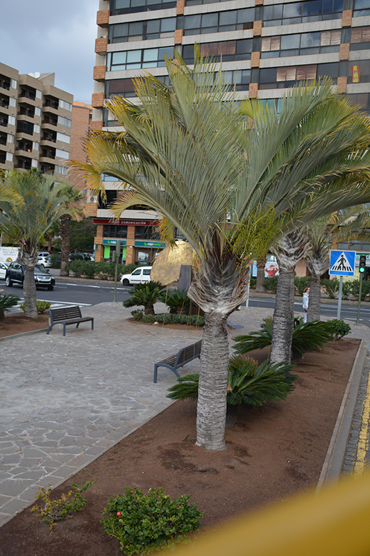 Hardiness Zone: 10a Other Names: syn. Neodypsis decaryi Description: A small to medium sized, single trunked palm, featuring a three-ranked crown of keeled, upright, gray to blue-green leaves that arch at the tips; an elegant addition to the landscape; clusters of pale yellow flowers in spring, followed by white fruit Ornamental Features Triangle Palm is primarily valued in the landscape for its canopy of attractive foliage which towers high above the ground. It features dainty panicles of buttery yellow flowers held atop the branches from late winter to early spring. It has attractive bluish-green-variegated grayish green foliage with hints of silvery blue. The large narrow pinnately compound leaves are highly ornamental and remain grayish green throughout the winter. The rough dark gray bark adds an interesting dimension to the landscape. Landscape Attributes Triangle Palm is an evergreen tree with a strong central leader and a towering form, with a high canopy of foliage concentrated at the top of the plant. Its relatively fine texture sets it apart from other landscape plants with less refined foliage. This is a relatively low maintenance tree, and should not require much pruning, except when necessary, such as to remove dieback. It has no significant negative characteristics. Triangle Palm is recommended for the following landscape applications; Planting & Growing Triangle Palm will grow to be about 20 feet tall at maturity, with a spread of 15 feet. It has a high canopy with a typical clearance of 6 feet from the ground, and is suitable for planting under power lines. As it matures, the lower branches of this tree can be strategically removed to create a high enough canopy to support unobstructed human traffic underneath. It grows at a medium rate, and under ideal conditions can be expected to live to a ripe old age of 200 years or more; think of this as a heritage tree for future generations! This tree does best in full sun to partial shade. It does best in average to evenly moist conditions, but will not tolerate standing water. It is not particular as to soil pH, but grows best in rich soils. It is somewhat tolerant of urban pollution. This species is not originally from North America.. Triangle Palm is a fine choice for the yard, but it is also a good selection for planting in outdoor pots and containers. Because of its height, it is often used as a 'thriller' in the 'spiller-thriller-filler' container combination; plant it near the center of the pot, surrounded by smaller plants and those that spill over the edges. It is even sizeable enough that it can be grown alone in a suitable container. Note that when grown in a container, it may not perform exactly as indicated on the tag - this is to be expected. Also note that when growing plants in outdoor containers and baskets, they may require more frequent waterings than they would in the yard or garden.