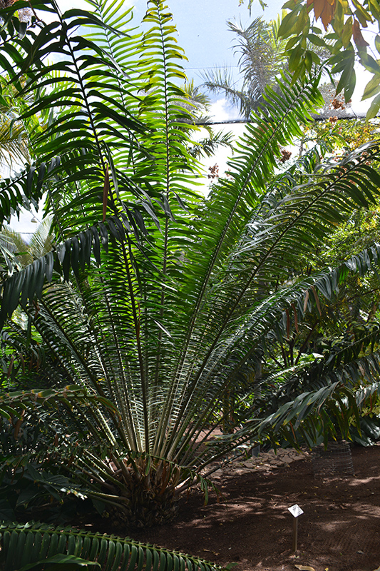 Hardiness Zone: 9b Description: One of the largest cycads, with long, pinnate leaves of sea-green; forms a tall trunk over a very long time period, and produces basal suckers; an impressive large landscape accent; adaptable and water tolerant, but must be well drained Ornamental Features Kwango Giant Cycad is primarily grown for its highly ornamental fruit. The gold fruits with orange overtones and which fade to tan over time are held in abundance in spectacular cones from late winter to late summer. It has attractive bluish-green evergreen foliage. The enormous glossy narrow pinnately compound leaves are highly ornamental and remain bluish-green throughout the winter. The rough bark and brown branches add an interesting dimension to the landscape. Landscape Attributes Kwango Giant Cycad is an open multi-stemmed evergreen tree with a shapely form and gracefully arching branches. Its relatively fine texture sets it apart from other landscape plants with less refined foliage. This is a relatively low maintenance tree, and should never be pruned except to remove any dieback, as it tends not to take pruning well. It has no significant negative characteristics. Kwango Giant Cycad is recommended for the following landscape applications; Planting & Growing Kwango Giant Cycad will grow to be about 30 feet tall at maturity, with a spread of 40 feet. It has a low canopy with a typical clearance of 4 feet from the ground, and should not be planted underneath power lines. It grows at a fast rate, and under ideal conditions can be expected to live to a ripe old age of 200 years or more; think of this as a heritage tree for future generations! This is a dioecious species, meaning that individual plants are either male or female. Only the females will produce fruit, and a male variety of the same species is required nearby as a pollinator. This tree does best in full sun to partial shade. It does best in average to evenly moist conditions, but will not tolerate standing water. It is not particular as to soil pH, but grows best in rich soils. It is quite intolerant of urban pollution, therefore inner city or urban streetside plantings are best avoided. This species is not originally from North America, and parts of it are known to be toxic to humans and animals, so care should be exercised in planting it around children and pets. It can be propagated by division. Kwango Giant Cycad is a fine choice for the yard, but it is also a good selection for planting in outdoor pots and containers. Because of its height, it is often used as a 'thriller' in the 'spiller-thriller-filler' container combination; plant it near the center of the pot, surrounded by smaller plants and those that spill over the edges. It is even sizeable enough that it can be grown alone in a suitable container. Note that when grown in a container, it may not perform exactly as indicated on the tag - this is to be expected. Also note that when growing plants in outdoor containers and baskets, they may require more frequent waterings than they would in the yard or garden.