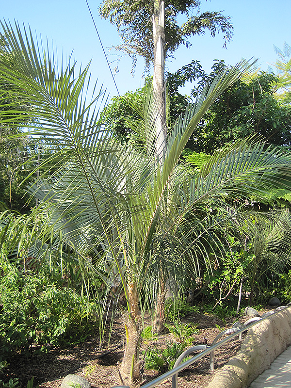 Hardiness Zone: 8a Other Names: Pasopaya Palm Description: A cold hardy, fast growing palm that is drought tolerant and does well in a drier climate; trim away dead foliage to enhance appearance; will slowly mature into a stately palm and make an excellent landscape focal point; not for humid climates Ornamental Features Bolivian Mountain Coconut has attractive grayish green foliage with hints of silver on a tree with the bulk of the canopy held atop a towering trunk or stem. The narrow pinnately compound leaves are highly ornamental and remain grayish green throughout the winter. It has panicles of yellow flowers hanging below the branches in mid summer. The rough brown bark adds an interesting dimension to the landscape. Landscape Attributes Bolivian Mountain Coconut is an evergreen tree with a strong central leader and a towering form, with a high canopy of foliage concentrated at the top of the plant. Its relatively fine texture sets it apart from other landscape plants with less refined foliage. This tree will require occasional maintenance and upkeep, and should not require much pruning, except when necessary, such as to remove dieback. It has no significant negative characteristics. Bolivian Mountain Coconut is recommended for the following landscape applications; Planting & Growing Bolivian Mountain Coconut will grow to be about 50 feet tall at maturity, with a spread of 25 feet. It has a high canopy of foliage that sits well above the ground, and should not be planted underneath power lines. As it matures, the lower branches of this tree can be strategically removed to create a high enough canopy to support unobstructed human traffic underneath. It grows at a fast rate, and under ideal conditions can be expected to live for 80 years or more. This tree does best in full sun to partial shade. It does best in average to evenly moist conditions, but will not tolerate standing water. It is not particular as to soil pH, but grows best in rich soils. It is somewhat tolerant of urban pollution. This species is not originally from North America.
