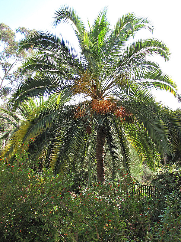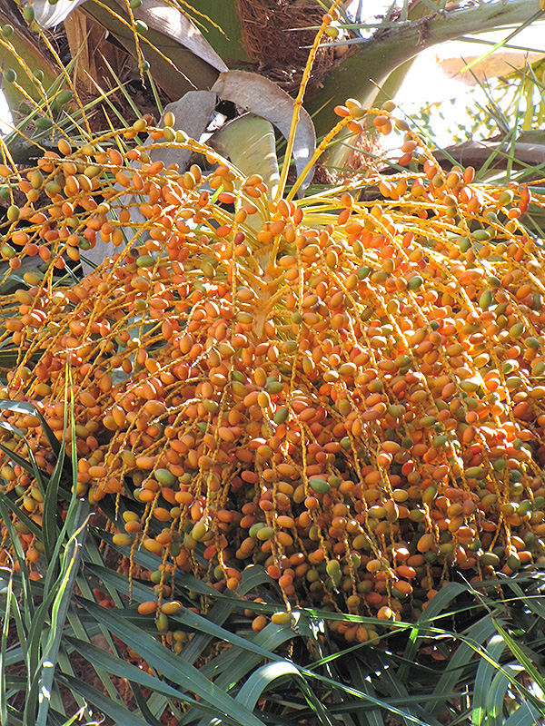 Hardiness Zone: 9b Other Names: Wild Date Palm Description: A clumping variety, widely utilized in tropical landscapes; cut away suckers for a single trunk; makes an excellent landscape focal point; showy ripe fruits may be harvested for eating, cooking, or preserves; grows in a wide range of conditions Ornamental Features Senegal Date Palm is primarily grown for its highly ornamental fruit. The fruits are showy orange drupes with a dark red blush and which fade to deep purple over time, which are carried in abundance in mid fall. The fruit can be messy if allowed to drop on the lawn or walkways, and may require occasional clean-up. It has attractive bluish-green evergreen foliage. The large narrow pinnately compound leaves are highly ornamental and remain bluish-green throughout the winter. It has panicles of yellow flowers hanging below the branches in mid summer. The rough brown bark adds an interesting dimension to the landscape. Landscape Attributes Senegal Date Palm is a multi-stemmed evergreen tree with a towering form, with a high canopy of foliage concentrated at the top of the plant. Its relatively fine texture sets it apart from other landscape plants with less refined foliage. This tree will require occasional maintenance and upkeep, and should not require much pruning, except when necessary, such as to remove dieback. Gardeners should be aware of the following characteristic(s) that may warrant special consideration; Senegal Date Palm is recommended for the following landscape applications; Planting & Growing Senegal Date Palm will grow to be about 50 feet tall at maturity, with a spread of 20 feet. It has a high canopy of foliage that sits well above the ground, and should not be planted underneath power lines. As it matures, the lower branches of this tree can be strategically removed to create a high enough canopy to support unobstructed human traffic underneath. It grows at a slow rate, and under ideal conditions can be expected to live for 60 years or more. This is a dioecious species, meaning that individual plants are either male or female. Only the females will produce fruit, and a male variety of the same species is required nearby as a pollinator. This tree does best in full sun to partial shade. It does best in average to evenly moist conditions, but will not tolerate standing water. It is not particular as to soil type or pH, and is able to handle environmental salt. It is somewhat tolerant of urban pollution. This species is not originally from North America.