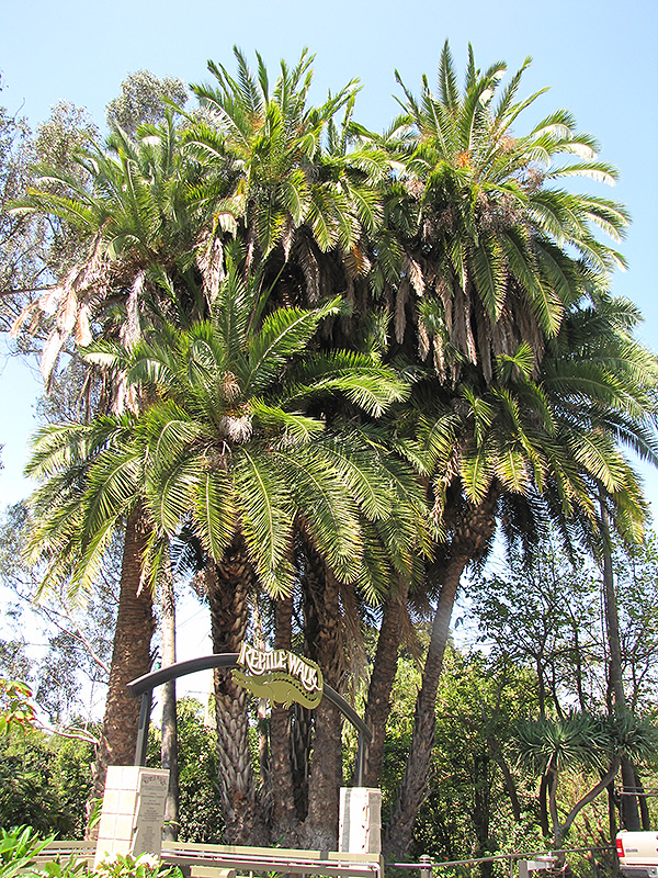 Hardiness Zone: 9b Other Names: Wild Date Palm Description: A clumping variety, widely utilized in tropical landscapes; makes an excellent landscape focal point; showy ripe fruits may be harvested for eating, cooking, or preserves; grows in a wide range of conditions Ornamental Features Senegal Date Palm is primarily grown for its highly ornamental fruit. The fruits are showy orange drupes with a dark red blush and which fade to deep purple over time, which are carried in abundance in mid fall. The fruit can be messy if allowed to drop on the lawn or walkways, and may require occasional clean-up. It has attractive bluish-green evergreen foliage. The large narrow pinnately compound leaves are highly ornamental and remain bluish-green throughout the winter. It has panicles of yellow flowers hanging below the branches in mid summer. The rough brown bark adds an interesting dimension to the landscape. Landscape Attributes Senegal Date Palm is a multi-stemmed evergreen tree with a towering form, with a high canopy of foliage concentrated at the top of the plant. Its relatively fine texture sets it apart from other landscape plants with less refined foliage. This tree will require occasional maintenance and upkeep, and should not require much pruning, except when necessary, such as to remove dieback. Gardeners should be aware of the following characteristic(s) that may warrant special consideration; Senegal Date Palm is recommended for the following landscape applications; Planting & Growing Senegal Date Palm will grow to be about 50 feet tall at maturity, with a spread of 20 feet. It has a high canopy of foliage that sits well above the ground, and should not be planted underneath power lines. As it matures, the lower branches of this tree can be strategically removed to create a high enough canopy to support unobstructed human traffic underneath. It grows at a slow rate, and under ideal conditions can be expected to live for 60 years or more. This is a dioecious species, meaning that individual plants are either male or female. Only the females will produce fruit, and a male variety of the same species is required nearby as a pollinator. This tree does best in full sun to partial shade. It does best in average to evenly moist conditions, but will not tolerate standing water. It is not particular as to soil type or pH, and is able to handle environmental salt. It is somewhat tolerant of urban pollution. This species is not originally from North America.