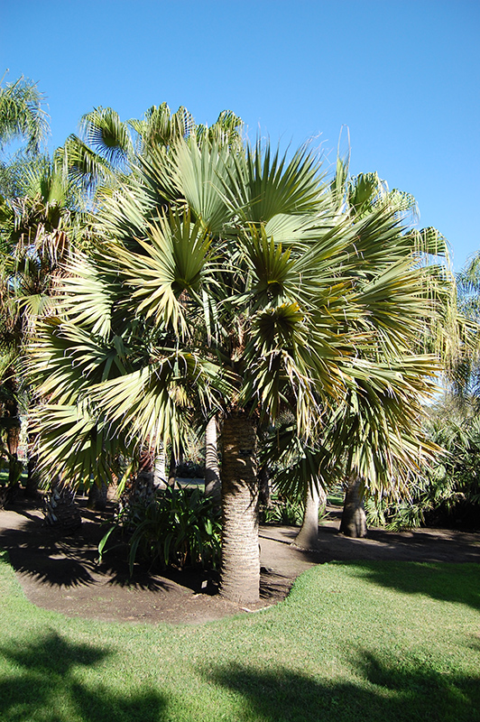 Hardiness Zone: 8a Other Names: Hispaniola Palm Description: This robust, stout palm makes a perfect landscape accent; tolerates drought and adapts to a wide variety of soils; quite resistant to cold and frost as well; has a reasonably fast growth rate Ornamental Features Dominican Palmetto features showy panicles of creamy white flowers held atop the branches in mid fall. It has attractive bluish-green evergreen foliage. The lobed palmate leaves are highly ornamental and remain bluish-green throughout the winter. The fruits are showy black drupes displayed from late fall to mid winter. Landscape Attributes Dominican Palmetto is an evergreen tree with a strong central leader and a towering form, with a high canopy of foliage concentrated at the top of the plant. Its average texture blends into the landscape, but can be balanced by one or two finer or coarser trees or shrubs for an effective composition. This is a relatively low maintenance tree, and is best pruned in late winter once the threat of extreme cold has passed. It has no significant negative characteristics. Dominican Palmetto is recommended for the following landscape applications; Planting & Growing Dominican Palmetto will grow to be about 40 feet tall at maturity, with a spread of 20 feet. It has a high canopy of foliage that sits well above the ground, and should not be planted underneath power lines. As it matures, the lower branches of this tree can be strategically removed to create a high enough canopy to support unobstructed human traffic underneath. It grows at a slow rate, and under ideal conditions can be expected to live for 80 years or more. This tree does best in full sun to partial shade. It does best in average to evenly moist conditions, but will not tolerate standing water. It is not particular as to soil pH, but grows best in sandy soils. It is somewhat tolerant of urban pollution. This species is not originally from North America. Dominican Palmetto is a fine choice for the yard, but it is also a good selection for planting in outdoor pots and containers. Because of its height, it is often used as a 'thriller' in the 'spiller-thriller-filler' container combination; plant it near the center of the pot, surrounded by smaller plants and those that spill over the edges. It is even sizeable enough that it can be grown alone in a suitable container. Note that when grown in a container, it may not perform exactly as indicated on the tag - this is to be expected. Also note that when growing plants in outdoor containers and baskets, they may require more frequent waterings than they would in the yard or garden.