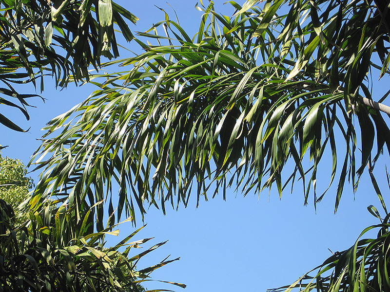 Hardiness Zone: 9a Description: A stunning palm with a beautiful, fine texture; its graceful silver trunk is topped with a smooth, green crownshaft bearing large foxtail-like fronds that are densely filled with leaflets; medium growth rate; an excellent vertical landscape accent Ornamental Features Foxtail Palm is draped in stunning panicles of white flowers with buttery yellow overtones hanging below the branches from mid winter to early spring. It has attractive forest green foliage with hints of grayish green. The large glossy narrow pinnately compound leaves are highly ornamental and remain forest green throughout the winter. The fruits are showy orange drupes with red overtones, which are carried in abundance from mid summer to mid winter. The smooth silver bark and green branches add an interesting dimension to the landscape. Landscape Attributes Foxtail Palm is an evergreen tree with a strong central leader and a towering form, with a high canopy of foliage concentrated at the top of the plant. Its relatively coarse texture can be used to stand it apart from other landscape plants with finer foliage. This is a relatively low maintenance tree, and should never be pruned except to remove any dieback, as it tends not to take pruning well. It is a good choice for attracting birds to your yard. It has no significant negative characteristics. Foxtail Palm is recommended for the following landscape applications; Planting & Growing Foxtail Palm will grow to be about 25 feet tall at maturity, with a spread of 15 feet. It has a high canopy of foliage that sits well above the ground, and should not be planted underneath power lines. As it matures, the lower branches of this tree can be strategically removed to create a high enough canopy to support unobstructed human traffic underneath. It grows at a medium rate, and under ideal conditions can be expected to live to a ripe old age of 100 years or more; think of this as a heritage tree for future generations! This is a self-pollinating variety, so it doesn't require a second plant nearby to set fruit. This tree does best in full sun to partial shade. It does best in average to evenly moist conditions, but will not tolerate standing water. It is not particular as to soil type or pH. It is somewhat tolerant of urban pollution. This species is not originally from North America..
