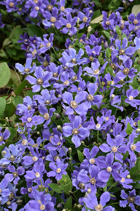 Hardiness Zone: 2b Other Names: Bush Clematis Brand: Walters Gardens Description: An incredibly showy bush variety, featuring an abundance of rich indigo-blue flowers throughout the summer; non-climbing, but benefits from the support of obelisks, staking, or other plants; a great accent plant for borders, gardens, or patio containers Ornamental Features Rain Dance Clematis features showy indigo star-shaped flowers with blue overtones and yellow anthers at the ends of the branches from late spring to late summer. It has green deciduous foliage. The glossy pointy compound leaves do not develop any appreciable fall color. Landscape Attributes Rain Dance Clematis is a multi-stemmed deciduous shrub with an upright spreading habit of growth. Its average texture blends into the landscape, but can be balanced by one or two finer or coarser trees or shrubs for an effective composition. This is a relatively low maintenance shrub. It is a Type 3 clematis; each spring it should be pruned back to within a few inches of the ground, as it flowers on new wood of the season. It is a good choice for attracting bees and butterflies to your yard, but is not particularly attractive to deer who tend to leave it alone in favor of tastier treats. It has no significant negative characteristics. Rain Dance Clematis is recommended for the following landscape applications; Planting & Growing Rain Dance Clematis will grow to be about 4 feet tall at maturity, with a spread of 30 inches. It tends to fill out right to the ground and therefore doesn't necessarily require facer plants in front. It grows at a medium rate, and under ideal conditions can be expected to live for approximately 20 years. This shrub does best in full sun to partial shade. It does best in average to evenly moist conditions, but will not tolerate standing water. It is not particular as to soil type or pH. It is somewhat tolerant of urban pollution. Consider applying a thick mulch around the root zone in both summer and winter to conserve soil moisture and protect it in exposed locations or colder microclimates. This particular variety is an interspecific hybrid. Rain Dance Clematis makes a fine choice for the outdoor landscape, but it is also well-suited for use in outdoor pots and containers. With its upright habit of growth, it is best suited for use as a 'thriller' in the 'spiller-thriller-filler' container combination; plant it near the center of the pot, surrounded by smaller plants and those that spill over the edges. It is even sizeable enough that it can be grown alone in a suitable container. Note that when grown in a container, it may not perform exactly as indicated on the tag - this is to be expected. Also note that when growing plants in outdoor containers and baskets, they may require more frequent waterings than they would in the yard or garden.