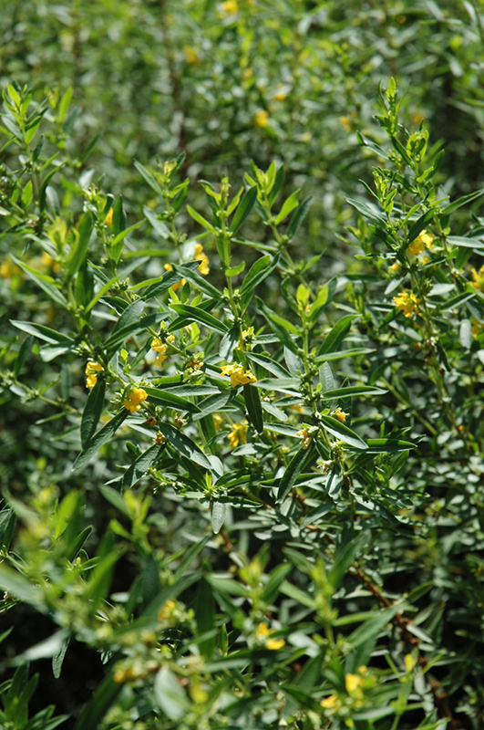 Hardiness Zone: 8b Other Names: Sinicuichi, Sun Opener, Narrow-leaf Heimia Description: A densely branched, spreading Southwest native, featuring fine textured, narrow foliage and yellow flowers from spring to fall, upon attractive reddish stems; a great screen or border plant; may be grown in pots and overwintered in bright indoor areas Ornamental Features Shrubby Yellowcrest is bathed in stunning yellow buttercup flowers held atop the branches from early summer to mid fall. It has dark green deciduous foliage. The small narrow leaves do not develop any appreciable fall color. Landscape Attributes Shrubby Yellowcrest is a dense multi-stemmed deciduous shrub with an upright spreading habit of growth. It lends an extremely fine and delicate texture to the landscape composition which can make it a great accent feature on this basis alone. This is a relatively low maintenance shrub, and should only be pruned after flowering to avoid removing any of the current season's flowers. It is a good choice for attracting bees and butterflies to your yard. Gardeners should be aware of the following characteristic(s) that may warrant special consideration; Shrubby Yellowcrest is recommended for the following landscape applications; Planting & Growing Shrubby Yellowcrest will grow to be about 8 feet tall at maturity, with a spread of 10 feet. It has a low canopy, and is suitable for planting under power lines. It grows at a medium rate, and under ideal conditions can be expected to live for approximately 30 years. This shrub does best in full sun to partial shade. It prefers to grow in average to moist conditions, and shouldn't be allowed to dry out. It is not particular as to soil type or pH. It is somewhat tolerant of urban pollution. Consider applying a thick mulch around the root zone in winter to protect it in exposed locations or colder microclimates. This species is native to parts of North America.. Shrubby Yellowcrest makes a fine choice for the outdoor landscape, but it is also well-suited for use in outdoor pots and containers. With its upright habit of growth, it is best suited for use as a 'thriller' in the 'spiller-thriller-filler' container combination; plant it near the center of the pot, surrounded by smaller plants and those that spill over the edges. It is even sizeable enough that it can be grown alone in a suitable container. Note that when grown in a container, it may not perform exactly as indicated on the tag - this is to be expected. Also note that when growing plants in outdoor containers and baskets, they may require more frequent waterings than they would in the yard or garden.