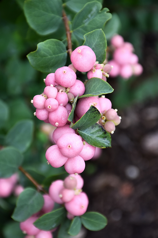 Hardiness Zone: 3b Other Names: Hybrid Snowberry Brand: Bloomin' Easy Description: A versatile compact variety, valued for its clusters of gumball pink berries that cover rich, mint-green foliage in late summer and early fall; great for cut flower arrangements; excellent for mixed beds, patio containers, or along walkways Ornamental Features Pinky Promise™ Snowberry is primarily grown for its highly ornamental fruit. It features an abundance of magnificent pink berries with white hints from late summer to early fall. It features subtle white bell-shaped flowers with pink overtones along the branches in early summer. It has bluish-green foliage with grayish green undersides. The oval leaves do not develop any appreciable fall color. Landscape Attributes Pinky Promise™ Snowberry is a dense multi-stemmed deciduous shrub with a mounded form. Its average texture blends into the landscape, but can be balanced by one or two finer or coarser trees or shrubs for an effective composition. This shrub will require occasional maintenance and upkeep, and can be pruned at anytime. It is a good choice for attracting birds to your yard, but is not particularly attractive to deer who tend to leave it alone in favor of tastier treats. Gardeners should be aware of the following characteristic(s) that may warrant special consideration; Pinky Promise™ Snowberry is recommended for the following landscape applications; Planting & Growing Pinky Promise™ Snowberry will grow to be about 3 feet tall at maturity, with a spread of 3 feet. It tends to fill out right to the ground and therefore doesn't necessarily require facer plants in front. It grows at a fast rate, and under ideal conditions can be expected to live for approximately 15 years. This shrub does best in full sun to partial shade. It is very adaptable to both dry and moist locations, and should do just fine under typical garden conditions. It is not particular as to soil pH, but grows best in clay soils. It is somewhat tolerant of urban pollution. This particular variety is an interspecific hybrid. Pinky Promise™ Snowberry makes a fine choice for the outdoor landscape, but it is also well-suited for use in outdoor pots and containers. Because of its height, it is often used as a 'thriller' in the 'spiller-thriller-filler' container combination; plant it near the center of the pot, surrounded by smaller plants and those that spill over the edges. It is even sizeable enough that it can be grown alone in a suitable container. Note that when grown in a container, it may not perform exactly as indicated on the tag - this is to be expected. Also note that when growing plants in outdoor containers and baskets, they may require more frequent waterings than they would in the yard or garden.
