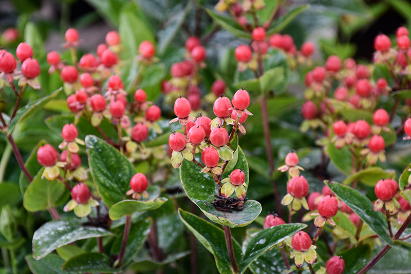 Hardiness Zone: 5b Group/Class: Miracle® Series Brand: Darwin Perennials Description: Attractive, golden yellow buttercup flowers are followed by glowing cherry red berries that contrast the dark green foliage; plant as a specimen, low hedge, or mass in showy drifts; very popular in cut flower arrangements Ornamental Features Miracle® Grandeur St. John's Wort has masses of beautiful yellow buttercup flowers at the ends of the branches from late spring to early summer, which are most effective when planted in groupings. The flowers are excellent for cutting. It features an abundance of magnificent cherry red berries from late summer to mid fall. It has dark green deciduous foliage. The pointy leaves do not develop any appreciable fall color. The brick red stems can be quite attractive. Landscape Attributes Miracle® Grandeur St. John's Wort is a multi-stemmed deciduous shrub with an upright spreading habit of growth. Its relatively fine texture sets it apart from other landscape plants with less refined foliage. This shrub will require occasional maintenance and upkeep, and is best pruned in late winter once the threat of extreme cold has passed. It is a good choice for attracting birds, bees and butterflies to your yard, but is not particularly attractive to deer who tend to leave it alone in favor of tastier treats. It has no significant negative characteristics. Miracle® Grandeur St. John's Wort is recommended for the following landscape applications; Planting & Growing Miracle® Grandeur St. John's Wort will grow to be about 30 inches tall at maturity, with a spread of 30 inches. It tends to fill out right to the ground and therefore doesn't necessarily require facer plants in front. It grows at a medium rate, and under ideal conditions can be expected to live for approximately 5 years. This is a self-pollinating variety, so it doesn't require a second plant nearby to set fruit. This shrub does best in full sun to partial shade. It prefers dry to average moisture levels with very well-drained soil, and will often die in standing water. It is considered to be drought-tolerant, and thus makes an ideal choice for a low-water garden or xeriscape application. It is not particular as to soil type or pH. It is highly tolerant of urban pollution and will even thrive in inner city environments, and will benefit from being planted in a relatively sheltered location. Consider applying a thick mulch around the root zone in winter to protect it in exposed locations or colder microclimates. This particular variety is an interspecific hybrid. It can be propagated by division; however, as a cultivated variety, be aware that it may be subject to certain restrictions or prohibitions on propagation. Miracle® Grandeur St. John's Wort makes a fine choice for the outdoor landscape, but it is also well-suited for use in outdoor pots and containers. With its upright habit of growth, it is best suited for use as a 'thriller' in the 'spiller-thriller-filler' container combination; plant it near the center of the pot, surrounded by smaller plants and those that spill over the edges. It is even sizeable enough that it can be grown alone in a suitable container. Note that when grown in a container, it may not perform exactly as indicated on the tag - this is to be expected. Also note that when growing plants in outdoor containers and baskets, they may require more frequent waterings than they would in the yard or garden.