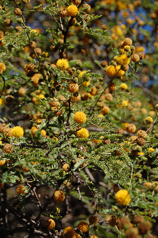 Hardiness Zone: 9a Other Names: syn. Vachellia farnesiana, Huisache, Mealy Wattle Description: A large, graceful shrub or small tree with a wide spreading canopy; feathery, soft green foliage is delicate and almost fern like; fragrant pea-like golden-yellow flowers appear in late winter to spring; drought tolerant once established Ornamental Features Sweet Acacia features showy racemes of fragrant yellow ball-shaped flowers along the branches from late winter to early spring. It has attractive light green foliage with hints of silver. The tiny narrow bipinnately compound leaves are highly ornamental and remain light green throughout the winter. The fruits are showy brown pods displayed from mid summer to mid fall. The fruit can be messy if allowed to drop on the lawn or walkways, and may require occasional clean-up. The furrowed dark gray bark adds an interesting dimension to the landscape. Landscape Attributes Sweet Acacia is a multi-stemmed evergreen tree with a shapely form and gracefully arching branches. Its relatively fine texture sets it apart from other landscape plants with less refined foliage. This is a relatively low maintenance tree, and should only be pruned after flowering to avoid removing any of the current season's flowers. It is a good choice for attracting birds, bees and butterflies to your yard, but is not particularly attractive to deer who tend to leave it alone in favor of tastier treats. Gardeners should be aware of the following characteristic(s) that may warrant special consideration; Sweet Acacia is recommended for the following landscape applications; Planting & Growing Sweet Acacia will grow to be about 25 feet tall at maturity, with a spread of 25 feet. It has a low canopy with a typical clearance of 2 feet from the ground, and is suitable for planting under power lines. It grows at a fast rate, and under ideal conditions can be expected to live for approximately 30 years. This tree does best in full sun to partial shade. It is very adaptable to both dry and moist growing conditions, but will not tolerate any standing water. It is considered to be drought-tolerant, and thus makes an ideal choice for xeriscaping or the moisture-conserving landscape. It is not particular as to soil pH, but grows best in sandy soils. It is somewhat tolerant of urban pollution. This species is not originally from North America..