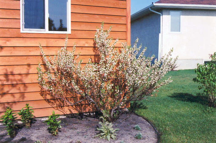 Hardiness Zone: 2a Other Names: Sandcherry Description: A medium-sized ornamental shrub featuring showy white flowers in spring followed by tart black cherries in summer, good for jams; low growing and wide spreading with good fall color; very hardy and adaptable, excellent for dry locations Ornamental Features Western Sandcherry is draped in stunning fragrant white flowers along the branches in mid spring before the leaves. It has grayish green deciduous foliage. The pointy leaves turn an outstanding orange in the fall. The fruits are showy deep purple drupes with black overtones, which are displayed in mid summer. This plant is primarily grown as an ornamental, but it's also valued for its edible qualities. The small round tart fruit is most often used in the following ways: Landscape Attributes Western Sandcherry is a multi-stemmed deciduous shrub with a more or less rounded form. Its relatively fine texture sets it apart from other landscape plants with less refined foliage. This is a relatively low maintenance shrub, and is best pruned in late winter once the threat of extreme cold has passed. It is a good choice for attracting birds to your yard. It has no significant negative characteristics. Western Sandcherry is recommended for the following landscape applications; Planting & Growing Western Sandcherry will grow to be about 5 feet tall at maturity, with a spread of 5 feet. It tends to fill out right to the ground and therefore doesn't necessarily require facer plants in front, and is suitable for planting under power lines. It grows at a medium rate, and under ideal conditions can be expected to live for approximately 20 years. This is a self-pollinating variety, so it doesn't require a second plant nearby to set fruit. This shrub should only be grown in full sunlight. It is very adaptable to both dry and moist growing conditions, but will not tolerate any standing water. It is considered to be drought-tolerant, and thus makes an ideal choice for xeriscaping or the moisture-conserving landscape. It is not particular as to soil type or pH. It is highly tolerant of urban pollution and will even thrive in inner city environments. This species is native to parts of North America.
