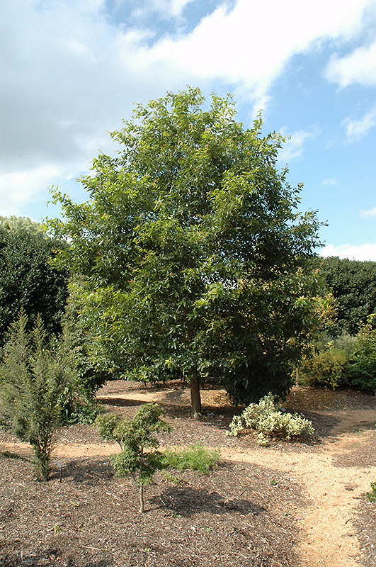 Hardiness Zone: 7b Description: A small to medium semi-evergreen tree that eventually forms a dense, rounded habit with handsome, large blue-green leaves that emerge red; insignificant late winter to spring flowers are followed by rounded acorns in fall; prefers hot summer areas Ornamental Features Mexican Royal Oak has bluish-green foliage with light green veins and tinges of chartreuse which emerges brick red in spring on a tree with an oval habit of growth. The large serrated oval leaves remain bluish-green throughout the winter. However, the fruit can be messy in the landscape and may require occasional clean-up. Landscape Attributes Mexican Royal Oak is a dense evergreen tree with a shapely oval form. Its average texture blends into the landscape, but can be balanced by one or two finer or coarser trees or shrubs for an effective composition. This tree will require occasional maintenance and upkeep, and is best pruned in late winter once the threat of extreme cold has passed. It is a good choice for attracting birds and squirrels to your yard, but is not particularly attractive to deer who tend to leave it alone in favor of tastier treats. Gardeners should be aware of the following characteristic(s) that may warrant special consideration; Mexican Royal Oak is recommended for the following landscape applications; Planting & Growing Mexican Royal Oak will grow to be about 35 feet tall at maturity, with a spread of 30 feet. It has a low canopy with a typical clearance of 5 feet from the ground, and should not be planted underneath power lines. It grows at a slow rate, and under ideal conditions can be expected to live to a ripe old age of 150 years or more; think of this as a heritage tree for future generations! This tree should only be grown in full sunlight. It prefers to grow in average to moist conditions, and shouldn't be allowed to dry out. This plant will benefit from an application of bonemeal and/or mycorrhizal fertilizer at the time of planting. It is not particular as to soil type or pH. It is highly tolerant of urban pollution and will even thrive in inner city environments. This species is not originally from North America.