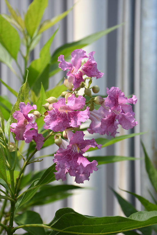 Hardiness Zone: 6a Brand: Proven Winners Description: An interesting hybrid flowering shrub or miniature tree that produces highly fragrant orchid-like flowers over an incredibly long season for a tree, extremely tolerant of dry, exposed sites Ornamental Features El Nino® Chitalpa features showy panicles of fragrant lilac purple orchid-like flowers with fuchsia overtones, white throats and purple stripes rising above the foliage from late spring to early fall. It has dark green deciduous foliage. The large pointy leaves do not develop any appreciable fall color. Landscape Attributes El Nino® Chitalpa is a multi-stemmed deciduous shrub with an upright spreading habit of growth. Its relatively coarse texture can be used to stand it apart from other landscape plants with finer foliage. This shrub will require occasional maintenance and upkeep, and is best pruned in late winter once the threat of extreme cold has passed. It is a good choice for attracting hummingbirds to your yard, but is not particularly attractive to deer who tend to leave it alone in favor of tastier treats. Gardeners should be aware of the following characteristic(s) that may warrant special consideration; El Nino® Chitalpa is recommended for the following landscape applications; Planting & Growing El Nino® Chitalpa will grow to be about 8 feet tall at maturity, with a spread of 6 feet. It has a low canopy with a typical clearance of 1 foot from the ground, and is suitable for planting under power lines. It grows at a fast rate, and under ideal conditions can be expected to live for 50 years or more. This shrub does best in full sun to partial shade. It is an amazingly adaptable plant, tolerating both dry conditions and even some standing water. It is considered to be drought-tolerant, and thus makes an ideal choice for xeriscaping or the moisture-conserving landscape. This plant will benefit from an application of bonemeal and/or mycorrhizal fertilizer at the time of planting. It is not particular as to soil type or pH, and is able to handle environmental salt. It is highly tolerant of urban pollution and will even thrive in inner city environments. This particular variety is an interspecific hybrid.