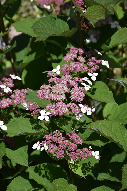 Hardiness Zone: 3a Other Names: Smooth Hydrangea Group/Class: Invincibelle Series Brand: Proven Winners Description: This elegant selection is the first ever smooth hydrangea with plum purple lacecap flowers and dark, ruby red stems; attractive, heart shaped foliage is nicely ridged and toothed on a graceful habit; best pruned in late winter, it blooms on new growth Ornamental Features Invincibelle Lace® Hydrangea features bold plum purple lacecap flowers with white overtones at the ends of the branches from early to late summer. The flowers are excellent for cutting. It has forest green deciduous foliage. The textured heart-shaped leaves do not develop any appreciable fall color. The smooth bark and ruby-red branches are extremely showy and add significant winter interest. Landscape Attributes Invincibelle Lace® Hydrangea is a multi-stemmed deciduous shrub with a more or less rounded form. Its relatively coarse texture can be used to stand it apart from other landscape plants with finer foliage. This shrub will require occasional maintenance and upkeep, and is best pruned in late winter once the threat of extreme cold has passed. It is a good choice for attracting bees and butterflies to your yard. It has no significant negative characteristics. Invincibelle Lace® Hydrangea is recommended for the following landscape applications; Planting & Growing Invincibelle Lace® Hydrangea will grow to be about 5 feet tall at maturity, with a spread of 5 feet. It tends to be a little leggy, with a typical clearance of 1 foot from the ground, and is suitable for planting under power lines. It grows at a fast rate, and under ideal conditions can be expected to live for approximately 20 years. This shrub does best in full sun to partial shade. You may want to keep it away from hot, dry locations that receive direct afternoon sun or which get reflected sunlight, such as against the south side of a white wall. It does best in average to evenly moist conditions, but will not tolerate standing water. To help this plant achive its best flowering performance, periodically apply a flower-boosting fertilizer from early spring through into the active growing season. It is not particular as to soil type or pH. It is highly tolerant of urban pollution and will even thrive in inner city environments. Consider applying a thick mulch around the root zone in winter to protect it in exposed locations or colder microclimates. This is a selection of a native North American species. Invincibelle Lace® Hydrangea makes a fine choice for the outdoor landscape, but it is also well-suited for use in outdoor pots and containers. Because of its height, it is often used as a 'thriller' in the 'spiller-thriller-filler' container combination; plant it near the center of the pot, surrounded by smaller plants and those that spill over the edges. It is even sizeable enough that it can be grown alone in a suitable container. Note that when grown in a container, it may not perform exactly as indicated on the tag - this is to be expected. Also note that when growing plants in outdoor containers and baskets, they may require more frequent waterings than they would in the yard or garden.