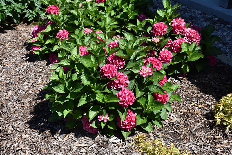 Hardiness Zone: 5a Other Names: French Hydrangea, Bigleaf Hydrangea Group/Class: Wee Bit Series Brand: Proven Winners Description: A tidy, compact shrub producing long lasting, intensely red, ball shaped flowers; gives an outstanding performance in the shrub border or foundation garden; perfect for patio containers; soil pH affects bloom color Ornamental Features Wee Bit Giddy® Hydrangea features bold balls of red flowers at the ends of the branches from early summer to early fall, which emerge from distinctive chartreuse flower buds. The flowers are excellent for cutting. It has forest green deciduous foliage. The serrated pointy leaves do not develop any appreciable fall color. Landscape Attributes Wee Bit Giddy® Hydrangea is a multi-stemmed deciduous shrub with a more or less rounded form. Its relatively coarse texture can be used to stand it apart from other landscape plants with finer foliage. This shrub will require occasional maintenance and upkeep, and should only be pruned after flowering to avoid removing any of the current season's flowers. It has no significant negative characteristics. Wee Bit Giddy® Hydrangea is recommended for the following landscape applications; Planting & Growing Wee Bit Giddy® Hydrangea will grow to be about 24 inches tall at maturity, with a spread of 30 inches. It tends to be a little leggy, with a typical clearance of 1 foot from the ground. It grows at a fast rate, and under ideal conditions can be expected to live for approximately 20 years. This shrub does best in full sun to partial shade. You may want to keep it away from hot, dry locations that receive direct afternoon sun or which get reflected sunlight, such as against the south side of a white wall. It requires an evenly moist well-drained soil for optimal growth. To help this plant achive its best flowering performance, periodically apply a flower-boosting fertilizer from early spring through into the active growing season. It is not particular as to soil type, but has a definite preference for alkaline soils. It is highly tolerant of urban pollution and will even thrive in inner city environments, and will benefit from being planted in a relatively sheltered location. Consider applying a thick mulch around the root zone in both summer and winter to conserve soil moisture and protect it in exposed locations or colder microclimates. This is a selected variety of a species not originally from North America. Wee Bit Giddy® Hydrangea makes a fine choice for the outdoor landscape, but it is also well-suited for use in outdoor pots and containers. It can be used either as 'filler' or as a 'thriller' in the 'spiller-thriller-filler' container combination, depending on the height and form of the other plants used in the container planting. It is even sizeable enough that it can be grown alone in a suitable container. Note that when grown in a container, it may not perform exactly as indicated on the tag - this is to be expected. Also note that when growing plants in outdoor containers and baskets, they may require more frequent waterings than they would in the yard or garden.