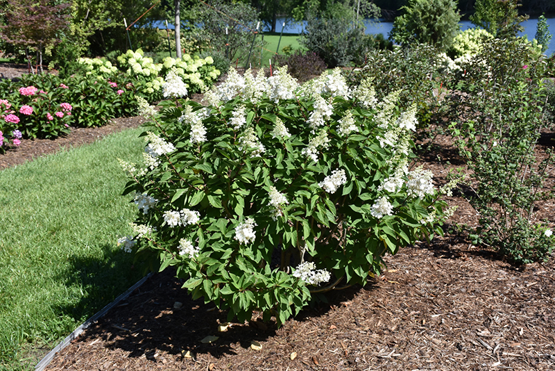 Hardiness Zone: 3a Brand: Proven Winners Description: A beautiful long-season bloomer featuring cones of mixed sterile and fertile white flowers in mid to late summer which transform to a rich pink; an improved version of 'Pinky Winky' hydrangea with larger, fuller flower heads and deeper hot pink color Ornamental Features Pinky Winky Prime® Hydrangea features bold conical white flowers at the ends of the branches from mid summer to late fall. The flowers are excellent for cutting. It has green deciduous foliage. The textured pointy leaves do not develop any appreciable fall color. Landscape Attributes Pinky Winky Prime® Hydrangea is a multi-stemmed deciduous shrub with an upright spreading habit of growth. Its relatively coarse texture can be used to stand it apart from other landscape plants with finer foliage. This shrub will require occasional maintenance and upkeep, and is best pruned in late winter once the threat of extreme cold has passed. It has no significant negative characteristics. Pinky Winky Prime® Hydrangea is recommended for the following landscape applications; Planting & Growing Pinky Winky Prime® Hydrangea will grow to be about 10 feet tall at maturity, with a spread of 10 feet. It tends to be a little leggy, with a typical clearance of 2 feet from the ground, and is suitable for planting under power lines. It grows at a medium rate, and under ideal conditions can be expected to live for 40 years or more. This shrub performs well in both full sun and full shade. It prefers to grow in average to moist conditions, and shouldn't be allowed to dry out. To help this plant achive its best flowering performance, periodically apply a flower-boosting fertilizer from early spring through into the active growing season. It is not particular as to soil type or pH. It is highly tolerant of urban pollution and will even thrive in inner city environments. Consider applying a thick mulch around the root zone in both summer and winter to conserve soil moisture and protect it in exposed locations or colder microclimates. This is a selected variety of a species not originally from North America.