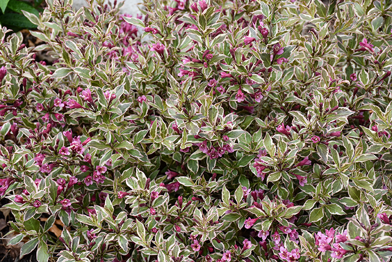 Hardiness Zone: 4a Brand: Proven Winners Description: An absolutely stunning selection, with plentiful deep rose-purple trumpet-shaped flowers appearing in late spring, along with cream and green variegated foliage that takes on purple tones; a colorful edging or container plant Ornamental Features My Monet Purple Effect® Weigela is covered in stunning clusters of rose trumpet-shaped flowers with yellow anthers along the branches in late spring, which emerge from distinctive crimson flower buds. It has attractive creamy white-variegated green foliage with hints of purple. The pointy leaves are highly ornamental and turn outstanding shades of burgundy and in the fall. Landscape Attributes My Monet Purple Effect® Weigela is a dense multi-stemmed deciduous shrub with a mounded form. Its relatively fine texture sets it apart from other landscape plants with less refined foliage. This shrub will require occasional maintenance and upkeep, and should only be pruned after flowering to avoid removing any of the current season's flowers. It is a good choice for attracting hummingbirds to your yard. It has no significant negative characteristics. My Monet Purple Effect® Weigela is recommended for the following landscape applications; Planting & Growing My Monet Purple Effect® Weigela will grow to be about 30 inches tall at maturity, with a spread of 30 inches. It tends to fill out right to the ground and therefore doesn't necessarily require facer plants in front. It grows at a fast rate, and under ideal conditions can be expected to live for approximately 30 years. This shrub should only be grown in full sunlight. It prefers to grow in average to moist conditions, and shouldn't be allowed to dry out. To help this plant achive its best flowering performance, periodically apply a flower-boosting fertilizer from early spring through into the active growing season. It is not particular as to soil type or pH. It is highly tolerant of urban pollution and will even thrive in inner city environments. This is a selected variety of a species not originally from North America. My Monet Purple Effect® Weigela makes a fine choice for the outdoor landscape, but it is also well-suited for use in outdoor pots and containers. It can be used either as 'filler' or as a 'thriller' in the 'spiller-thriller-filler' container combination, depending on the height and form of the other plants used in the container planting. It is even sizeable enough that it can be grown alone in a suitable container. Note that when grown in a container, it may not perform exactly as indicated on the tag - this is to be expected. Also note that when growing plants in outdoor containers and baskets, they may require more frequent waterings than they would in the yard or garden.
