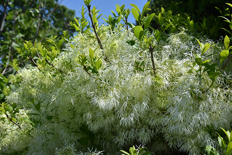Hardiness Zone: 4a Other Names: Fringe Tree, Old Man's Beard, Grancy Graybeard Description: A strikingly beautiful shrub when in bloom, with cloud-like panicles of fine strap-like flowers in spring atop the green foliage; a dwarf male selection that produces no fruit; interesting bark for winter value; a wonderful landscape accent Ornamental Features White Knight Fringetree is clothed in stunning panicles of fragrant white strap-like flowers held atop the branches from mid to late spring. It has green deciduous foliage. The glossy oval leaves turn yellow in fall. The peeling gray bark adds an interesting dimension to the landscape. Landscape Attributes White Knight Fringetree is a multi-stemmed deciduous shrub with a more or less rounded form. Its relatively coarse texture can be used to stand it apart from other landscape plants with finer foliage. This is a relatively low maintenance shrub, and should only be pruned after flowering to avoid removing any of the current season's flowers. It has no significant negative characteristics. White Knight Fringetree is recommended for the following landscape applications; Planting & Growing White Knight Fringetree will grow to be about 15 feet tall at maturity, with a spread of 10 feet. It has a low canopy with a typical clearance of 1 foot from the ground, and is suitable for planting under power lines. It grows at a slow rate, and under ideal conditions can be expected to live for 70 years or more. This shrub does best in full sun to partial shade. It is an amazingly adaptable plant, tolerating both dry conditions and even some standing water. This plant should be periodically fertilized throughout the active growing season with a specially-formulated acidic fertilizer. It is particular about its soil conditions, with a strong preference for rich, acidic soils, and is able to handle environmental salt. It is highly tolerant of urban pollution and will even thrive in inner city environments. This is a selection of a native North American species.