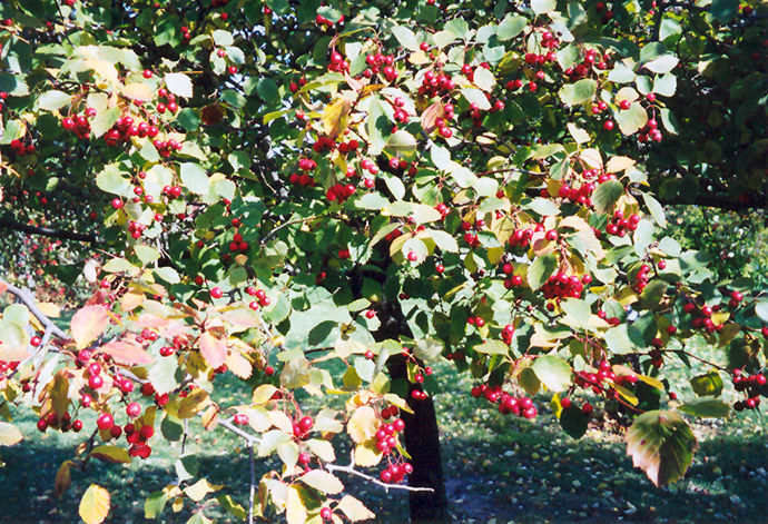 Hardiness Zone: 3b Description: A common shrub found along roadsides and the edges of forests, but not very common in home landscapes; forms a small tree with a spreading habit, white flower clusters are followed by copious brilliant red fruit in fall; long thorns are very sharp Ornamental Features Fleshy Hawthorn is primarily grown for its highly ornamental fruit. The fruits are showy cherry red pomes carried in abundance from early to late fall. It has clusters of white flowers at the ends of the branches in mid spring. It has dark green deciduous foliage. The serrated lobed leaves turn yellow in fall. Landscape Attributes Fleshy Hawthorn is a multi-stemmed deciduous shrub with an upright spreading habit of growth. Its average texture blends into the landscape, but can be balanced by one or two finer or coarser trees or shrubs for an effective composition. This shrub will require occasional maintenance and upkeep, and is best pruned in late winter once the threat of extreme cold has passed. Gardeners should be aware of the following characteristic(s) that may warrant special consideration; Fleshy Hawthorn is recommended for the following landscape applications; Planting & Growing Fleshy Hawthorn will grow to be about 15 feet tall at maturity, with a spread of 12 feet. It has a low canopy with a typical clearance of 1 foot from the ground, and is suitable for planting under power lines. It grows at a medium rate, and under ideal conditions can be expected to live for approximately 30 years. This shrub does best in full sun to partial shade. It is very adaptable to both dry and moist growing conditions, but will not tolerate any standing water. It is not particular as to soil type or pH. It is somewhat tolerant of urban pollution. This species is native to parts of North America.