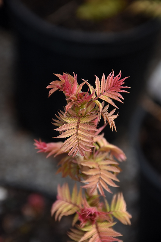 Hardiness Zone: 2a Other Names: Ural False Spirea, Ash Leaf Spirea Brand: Bloomin' Easy Description: A nicely rounded shrub, presenting tropical-like, ferny foliage that emerges vivid pink to red, turns chartreuse with bronze tips, then matures to light green; showy white flowers are followed by bright red pods; an excellent low hedge or border accent Ornamental Features Cherry On Top™ False Spirea features showy plumes of white flowers rising above the foliage from early to late summer. It has attractive coppery-bronze-variegated light green foliage with hints of chartreuse which emerges coral-pink in spring. The pinnately compound leaves are highly ornamental and turn an outstanding coppery-bronze in the fall. The fruits are showy red pods carried in abundance from early fall to late winter. The smooth gray bark and dark red branches are extremely showy and add significant winter interest. Landscape Attributes Cherry On Top™ False Spirea is a multi-stemmed deciduous shrub with a more or less rounded form. Its relatively fine texture sets it apart from other landscape plants with less refined foliage. This shrub will require occasional maintenance and upkeep, and is best pruned in late winter once the threat of extreme cold has passed. Gardeners should be aware of the following characteristic(s) that may warrant special consideration; Cherry On Top™ False Spirea is recommended for the following landscape applications; Planting & Growing Cherry On Top™ False Spirea will grow to be about 5 feet tall at maturity, with a spread of 5 feet. It tends to fill out right to the ground and therefore doesn't necessarily require facer plants in front, and is suitable for planting under power lines. It grows at a fast rate, and under ideal conditions can be expected to live for approximately 20 years. This shrub does best in full sun to partial shade. It prefers to grow in average to moist conditions, and shouldn't be allowed to dry out. It is not particular as to soil type or pH. It is somewhat tolerant of urban pollution. This is a selected variety of a species not originally from North America. Cherry On Top™ False Spirea makes a fine choice for the outdoor landscape, but it is also well-suited for use in outdoor pots and containers. Because of its height, it is often used as a 'thriller' in the 'spiller-thriller-filler' container combination; plant it near the center of the pot, surrounded by smaller plants and those that spill over the edges. It is even sizeable enough that it can be grown alone in a suitable container. Note that when grown in a container, it may not perform exactly as indicated on the tag - this is to be expected. Also note that when growing plants in outdoor containers and baskets, they may require more frequent waterings than they would in the yard or garden.