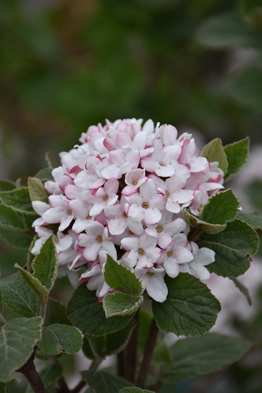 Hardiness Zone: 5a Other Names: Korean Spice Brand: Plants Nouveau Description: A stunning selection, with intoxicatingly sweet-smelling ball-shaped clusters of pink and white in early spring; clusters are smaller but more plentiful; plant where the fragrance can be enjoyed; tidy the rest of the year; makes a great accent or hedge Ornamental Features Sugar n' Spice™ Koreanspice Viburnum is smothered in stunning balls of fragrant white flowers with shell pink overtones at the ends of the branches in mid spring, which emerge from distinctive pink flower buds. It has green deciduous foliage. The heart-shaped leaves turn outstanding shades of red and burgundy in the fall. The black fruits are held in clusters from late summer to late fall. Landscape Attributes Sugar n' Spice™ Koreanspice Viburnum is a dense multi-stemmed deciduous shrub with an upright spreading habit of growth. Its average texture blends into the landscape, but can be balanced by one or two finer or coarser trees or shrubs for an effective composition. This is a relatively low maintenance shrub, and should only be pruned after flowering to avoid removing any of the current season's flowers. It is a good choice for attracting birds to your yard, but is not particularly attractive to deer who tend to leave it alone in favor of tastier treats. It has no significant negative characteristics. Sugar n' Spice™ Koreanspice Viburnum is recommended for the following landscape applications; Planting & Growing Sugar n' Spice™ Koreanspice Viburnum will grow to be about 6 feet tall at maturity, with a spread of 6 feet. It tends to be a little leggy, with a typical clearance of 1 foot from the ground, and is suitable for planting under power lines. It grows at a slow rate, and under ideal conditions can be expected to live for 40 years or more. This shrub does best in full sun to partial shade. It prefers to grow in average to moist conditions, and shouldn't be allowed to dry out. It is not particular as to soil type or pH. It is somewhat tolerant of urban pollution. This is a selected variety of a species not originally from North America.