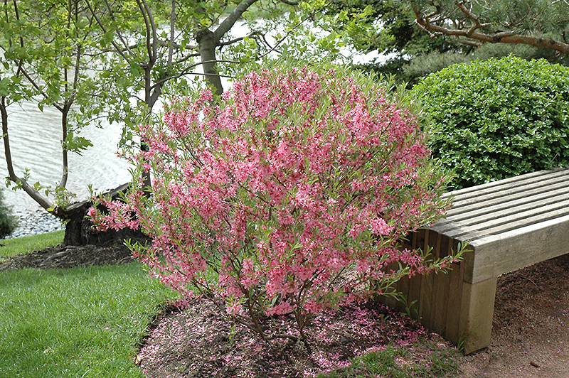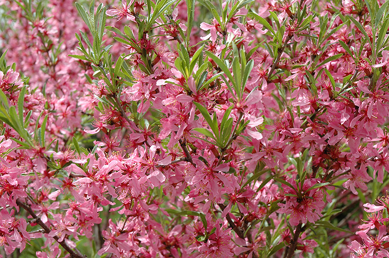 Hardiness Zone: 2a Other Names: Dwarf Russian Almond Description: A compact and spreading shrub valued for its very showy bright pink flowers in early spring which smother the bare branches followed by sparse but curious fuzzy fruit; some suckering, does best in full sun and well-drained soil Ornamental Features Russian Almond is bathed in stunning fragrant pink flowers along the branches in early spring, which emerge from distinctive rose flower buds before the leaves. It has forest green deciduous foliage. The narrow leaves turn yellow in fall. Landscape Attributes Russian Almond is a multi-stemmed deciduous shrub with an upright spreading habit of growth. Its average texture blends into the landscape, but can be balanced by one or two finer or coarser trees or shrubs for an effective composition. This is a high maintenance shrub that will require regular care and upkeep, and should only be pruned after flowering to avoid removing any of the current season's flowers. Gardeners should be aware of the following characteristic(s) that may warrant special consideration; Russian Almond is recommended for the following landscape applications; Planting & Growing Russian Almond will grow to be about 5 feet tall at maturity, with a spread of 4 feet. It tends to be a little leggy, with a typical clearance of 1 foot from the ground, and is suitable for planting under power lines. It grows at a medium rate, and under ideal conditions can be expected to live for approximately 20 years. This shrub should only be grown in full sunlight. It is very adaptable to both dry and moist growing conditions, but will not tolerate any standing water. It is not particular as to soil type or pH. It is highly tolerant of urban pollution and will even thrive in inner city environments. This species is not originally from North America.