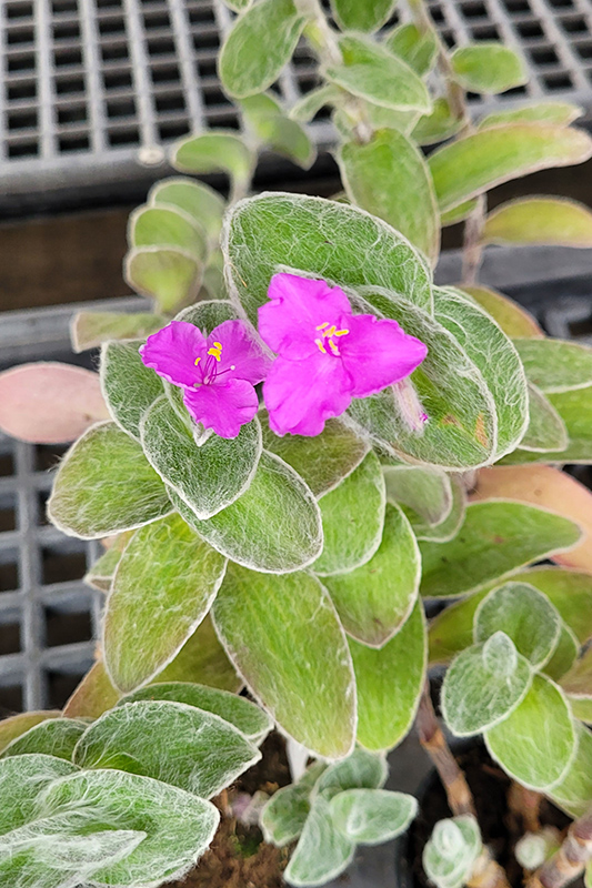 Hardiness Zone: 10a Other Names: White Velvet, White Gossamer Plant Description: This evergreen, erect perennial is predominantly grown for its foliage; olive to gray-green leaves are densely covered with silver-white, woolly hairs; small bright purple-pink flowers appear in summer; a distinctive groundcover or container accent Ornamental Features Cobweb Spiderwort features dainty fuchsia flowers with gold anthers at the ends of the stems from early to mid summer, which emerge from distinctive ruby-red flower buds. Its attractive tomentose oval leaves emerge olive green in spring, turning grayish green in color with hints of silver the rest of the year. Landscape Attributes Cobweb Spiderwort is an herbaceous evergreen perennial with an upright spreading habit of growth. Its relatively fine texture sets it apart from other garden plants with less refined foliage. This is a relatively low maintenance plant, and is best cleaned up in early spring before it resumes active growth for the season. Deer don't particularly care for this plant and will usually leave it alone in favor of tastier treats. It has no significant negative characteristics. Cobweb Spiderwort is recommended for the following landscape applications; Planting & Growing Cobweb Spiderwort will grow to be about 12 inches tall at maturity, with a spread of 20 inches. Its foliage tends to remain dense right to the ground, not requiring facer plants in front. It grows at a fast rate, and under ideal conditions can be expected to live for approximately 10 years. As an evegreen perennial, this plant will typically keep its form and foliage year-round. This plant does best in full sun to partial shade. It prefers dry to average moisture levels with very well-drained soil, and will often die in standing water. It is considered to be drought-tolerant, and thus makes an ideal choice for a low-water garden or xeriscape application. This plant should not require much in the way of fertilizing once established, although it may appreciate a shot of general-purpose fertilizer from time to time early in the growing season. It is not particular as to soil type or pH. It is highly tolerant of urban pollution and will even thrive in inner city environments. Consider applying a thick mulch around the root zone in winter to protect it in exposed locations or colder microclimates. This species is not originally from North America. It can be propagated by cuttings. Cobweb Spiderwort is a fine choice for the garden, but it is also a good selection for planting in outdoor containers and hanging baskets. It is often used as a 'filler' in the 'spiller-thriller-filler' container combination, providing a mass of flowers and foliage against which the larger thriller plants stand out. Note that when growing plants in outdoor containers and baskets, they may require more frequent waterings than they would in the yard or garden.