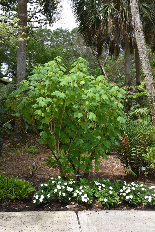 Hardiness Zone: 7a Other Names: Cotton Rosemallow, Hardy Hibiscus Description: This bold shrub behaves like a perennial in colder zones; features showy single or double, pale pink to red flowers in summer to fall; attractive green maple-shaped leaves; ideal for the mixed garden border or massed; do not allow to dry to wilting point Ornamental Features Confederate Rose features bold shell pink round flowers with white overtones and gold eyes at the ends of the branches from early summer to mid fall. It has green deciduous foliage. The large serrated lobed leaves do not develop any appreciable fall color. Landscape Attributes Confederate Rose is a multi-stemmed deciduous shrub with an upright spreading habit of growth. Its relatively coarse texture can be used to stand it apart from other landscape plants with finer foliage. This shrub will require occasional maintenance and upkeep, and should only be pruned after flowering to avoid removing any of the current season's flowers. It is a good choice for attracting butterflies and hummingbirds to your yard. Gardeners should be aware of the following characteristic(s) that may warrant special consideration; Confederate Rose is recommended for the following landscape applications; Planting & Growing Confederate Rose will grow to be about 7 feet tall at maturity, with a spread of 4 feet. When grown in masses or used as a bedding plant, individual plants should be spaced approximately 4 feet apart. It has a low canopy, and is suitable for planting under power lines. It grows at a fast rate, and under ideal conditions can be expected to live for approximately 5 years. This shrub does best in full sun to partial shade. It does best in average to evenly moist conditions, but will not tolerate standing water. This plant should not require much in the way of fertilizing once established, although it may appreciate a shot of general-purpose fertilizer from time to time early in the growing season. It is not particular as to soil pH, but grows best in rich soils. It is highly tolerant of urban pollution and will even thrive in inner city environments. Consider applying a thick mulch around the root zone in winter to protect it in exposed locations or colder microclimates. This species is not originally from North America. It can be propagated by cuttings. Confederate Rose makes a fine choice for the outdoor landscape, but it is also well-suited for use in outdoor pots and containers. With its upright habit of growth, it is best suited for use as a 'thriller' in the 'spiller-thriller-filler' container combination; plant it near the center of the pot, surrounded by smaller plants and those that spill over the edges. It is even sizeable enough that it can be grown alone in a suitable container. Note that when grown in a container, it may not perform exactly as indicated on the tag - this is to be expected. Also note that when growing plants in outdoor containers and baskets, they may require more frequent waterings than they would in the yard or garden.