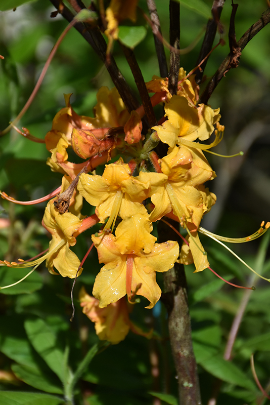 Hardiness Zone: 6a Group/Class: Aromi Hybrid Description: Large, fragrant blooms of yellow, orange, and gold adorn this lovely variety in early to mid spring; an accent shrub that will definitely stand out; resistant to heat, humidity and insects; absolutely must have well-drained, highly acidic and organic soil Ornamental Features Dancing Rabbit Azalea is covered in stunning clusters of fragrant yellow trumpet-shaped flowers with orange overtones, peach throats and a gold blotch at the ends of the branches from early to mid spring. It has green deciduous foliage. The glossy narrow leaves turn tan and in fall. Landscape Attributes Dancing Rabbit Azalea is an open multi-stemmed deciduous shrub with an upright spreading habit of growth. Its relatively coarse texture can be used to stand it apart from other landscape plants with finer foliage. This is a relatively low maintenance shrub, and should only be pruned after flowering to avoid removing any of the current season's flowers. It has no significant negative characteristics. Dancing Rabbit Azalea is recommended for the following landscape applications; Planting & Growing Dancing Rabbit Azalea will grow to be about 8 feet tall at maturity, with a spread of 6 feet. It tends to be a little leggy, with a typical clearance of 1 foot from the ground, and is suitable for planting under power lines. It grows at a slow rate, and under ideal conditions can be expected to live for 40 years or more. This shrub does best in full sun to partial shade. You may want to keep it away from hot, dry locations that receive direct afternoon sun or which get reflected sunlight, such as against the south side of a white wall. It requires an evenly moist well-drained soil for optimal growth, but will die in standing water. This plant should be periodically fertilized throughout the active growing season with a specially-formulated acidic fertilizer. It is very fussy about its soil conditions and must have rich, acidic soils to ensure success, and is subject to chlorosis (yellowing) of the foliage in alkaline soils. It is somewhat tolerant of urban pollution, and will benefit from being planted in a relatively sheltered location. Consider applying a thick mulch around the root zone in winter to protect it in exposed locations or colder microclimates. This particular variety is an interspecific hybrid.