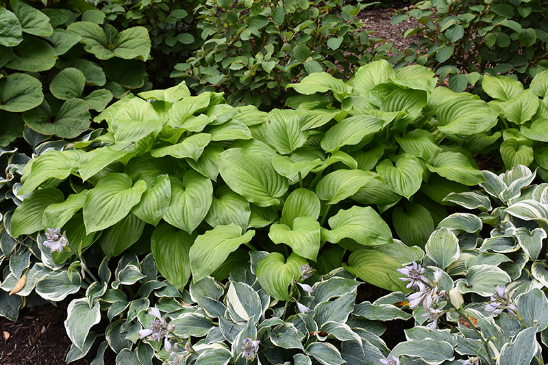 Hardiness Zone: 2a Other Names: Plantain Lily, Funkia Description: A wonderful mid sized variety producing mounds of chartreuse=gold leaves with irregular medium green margins; highly fragrant white flowers appear on tall scapes during the midsummer months; adds color, contrast and texture to beds, borders and containers Ornamental Features Guacamole Hosta features dainty spikes of white bell-shaped flowers rising above the foliage in mid summer. Its attractive large textured heart-shaped leaves remain chartreuse in color with showy emerald green variegation throughout the season. Landscape Attributes Guacamole Hosta is a dense herbaceous perennial with tall flower stalks held atop a low mound of foliage. Its relatively coarse texture can be used to stand it apart from other garden plants with finer foliage. This is a relatively low maintenance plant, and is best cleaned up in early spring before it resumes active growth for the season. Gardeners should be aware of the following characteristic(s) that may warrant special consideration; Guacamole Hosta is recommended for the following landscape applications; Planting & Growing Guacamole Hosta will grow to be about 24 inches tall at maturity extending to 3 feet tall with the flowers, with a spread of 4 feet. When grown in masses or used as a bedding plant, individual plants should be spaced approximately 3 feet apart. Its foliage tends to remain dense right to the ground, not requiring facer plants in front. It grows at a medium rate, and under ideal conditions can be expected to live for approximately 10 years. As an herbaceous perennial, this plant will usually die back to the crown each winter, and will regrow from the base each spring. Be careful not to disturb the crown in late winter when it may not be readily seen! This plant does best in partial shade to shade. It prefers to grow in average to moist conditions, and shouldn't be allowed to dry out. It is not particular as to soil type or pH. It is somewhat tolerant of urban pollution. This particular variety is an interspecific hybrid. It can be propagated by division; however, as a cultivated variety, be aware that it may be subject to certain restrictions or prohibitions on propagation.