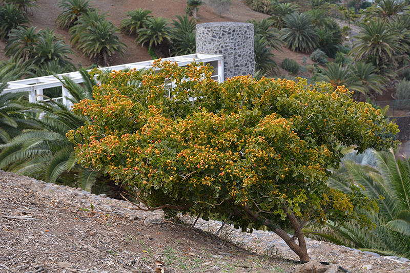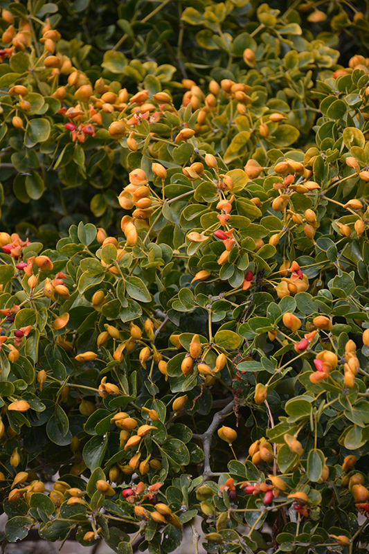 Hardiness Zone: 10a Other Names: Guaiacwood, Pockholz, Wood Of Life, Guajacum Description: A slow growing, multi-stemmed, broadleaf evergreen tree or large shrub that is great for dry, coastal areas once established; blooms on and off throughout the year, but mostly in early spring; an excellent border or landscape accent Ornamental Features Rough Bark Lignum Vitae is bathed in stunning clusters of lavender star-shaped flowers with blue overtones at the ends of the branches from late winter to mid spring. The fruits are showy yellow pods with a orange blush, which are carried in abundance from early summer to late fall. The fruit can be messy if allowed to drop on the lawn or walkways, and may require occasional clean-up. It has dark green evergreen foliage. The glossy oval leaves remain dark green throughout the winter. The rough brown bark is extremely showy and adds significant winter interest. Landscape Attributes Rough Bark Lignum Vitae is a multi-stemmed evergreen tree with an upright spreading habit of growth. Its average texture blends into the landscape, but can be balanced by one or two finer or coarser trees or shrubs for an effective composition. This tree will require occasional maintenance and upkeep, and should only be pruned after flowering to avoid removing any of the current season's flowers. It is a good choice for attracting bees and butterflies to your yard. It has no significant negative characteristics. Rough Bark Lignum Vitae is recommended for the following landscape applications; Planting & Growing Rough Bark Lignum Vitae will grow to be about 30 feet tall at maturity, with a spread of 25 feet. It has a low canopy with a typical clearance of 2 feet from the ground, and is suitable for planting under power lines. It grows at a slow rate, and under ideal conditions can be expected to live for 80 years or more. This tree does best in full sun to partial shade. It prefers to grow in average to moist conditions, and shouldn't be allowed to dry out. This plant does not require much in the way of fertilizing once established. It is not particular as to soil type or pH, and is able to handle environmental salt. It is highly tolerant of urban pollution and will even thrive in inner city environments. This species is not originally from North America. Rough Bark Lignum Vitae is a fine choice for the yard, but it is also a good selection for planting in outdoor pots and containers. Its large size and upright habit of growth lend it for use as a solitary accent, or in a composition surrounded by smaller plants around the base and those that spill over the edges. It is even sizeable enough that it can be grown alone in a suitable container. Note that when grown in a container, it may not perform exactly as indicated on the tag - this is to be expected. Also note that when growing plants in outdoor containers and baskets, they may require more frequent waterings than they would in the yard or garden.