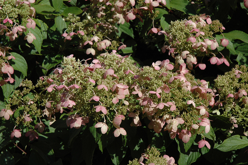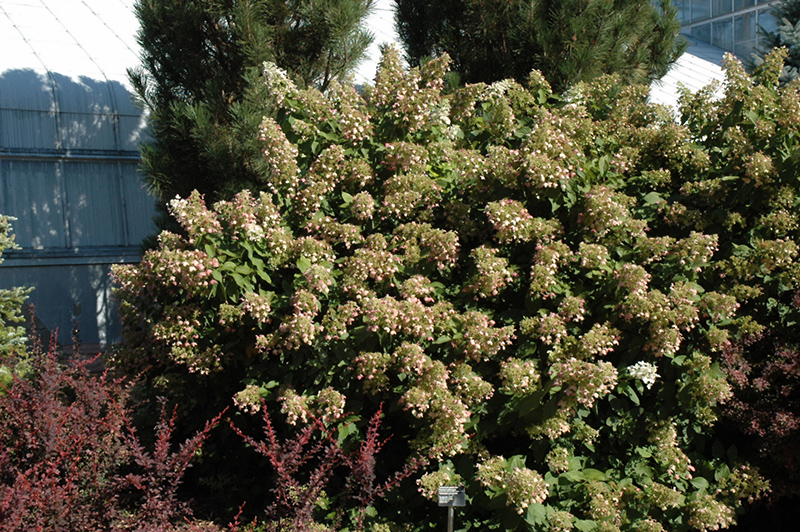 Hardiness Zone: 4a Description: A colorful late-summer blooming shrub that's tough, adaptable and pretty in bloom, with very long cones of flowers that start out white and quickly fade to rich rose-pink, eventually taking on shades of violet; regular pruning is recommended for density Ornamental Features Burgundy Lace Hydrangea features bold conical white flowers at the ends of the branches from mid summer to late fall. The flowers are excellent for cutting. It has green deciduous foliage. The pointy leaves do not develop any appreciable fall color. Landscape Attributes Burgundy Lace Hydrangea is a multi-stemmed deciduous shrub with an upright spreading habit of growth. Its relatively coarse texture can be used to stand it apart from other landscape plants with finer foliage. This shrub will require occasional maintenance and upkeep, and is best pruned in late winter once the threat of extreme cold has passed. It has no significant negative characteristics. Burgundy Lace Hydrangea is recommended for the following landscape applications; Planting & Growing Burgundy Lace Hydrangea will grow to be about 8 feet tall at maturity, with a spread of 8 feet. It tends to be a little leggy, with a typical clearance of 1 foot from the ground, and is suitable for planting under power lines. It grows at a medium rate, and under ideal conditions can be expected to live for 40 years or more. This shrub performs well in both full sun and full shade. It prefers to grow in average to moist conditions, and shouldn't be allowed to dry out. It is not particular as to soil type or pH. It is highly tolerant of urban pollution and will even thrive in inner city environments. Consider applying a thick mulch around the root zone in winter to protect it in exposed locations or colder microclimates. This is a selected variety of a species not originally from North America.