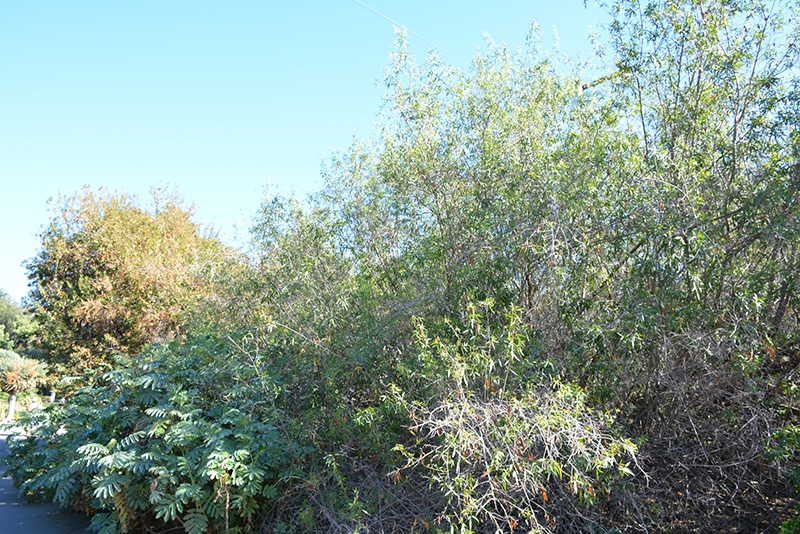 Hardiness Zone: 9a Other Names: Rhus Pendulina Description: A large, upright evergreen shrub or small tree with weeping branchlets and a rounded canopy; willow-like foliage is dark green above and pale gray-green below; tiny green flowers in spring are followed by round red fruit; drought tolerant once established Ornamental Features White Karee is primarily grown for its highly ornamental fruit. It features an abundance of magnificent chartreuse berries with red blush from late summer to late fall, which fade to brown over time. The fruit can be messy if allowed to drop on the lawn or walkways, and may require occasional clean-up. It has attractive dark green foliage with grayish green undersides and tinges of silver. The narrow compound leaves are highly ornamental and remain dark green throughout the winter. The spiny gray bark is extremely showy and adds significant winter interest. Landscape Attributes White Karee is a dense multi-stemmed evergreen tree with a shapely form and gracefully arching branches. Its relatively fine texture sets it apart from other landscape plants with less refined foliage. This is a high maintenance tree that will require regular care and upkeep, and is best pruned in late winter once the threat of extreme cold has passed. It is a good choice for attracting birds, bees and butterflies to your yard, but is not particularly attractive to deer who tend to leave it alone in favor of tastier treats. Gardeners should be aware of the following characteristic(s) that may warrant special consideration; White Karee is recommended for the following landscape applications; Planting & Growing White Karee will grow to be about 20 feet tall at maturity, with a spread of 20 feet. It has a low canopy with a typical clearance of 1 foot from the ground, and is suitable for planting under power lines. It grows at a slow rate, and under ideal conditions can be expected to live for approximately 30 years. This is a dioecious species, meaning that individual plants are either male or female. Only the females will produce fruit, and a male variety of the same species is required nearby as a pollinator. This tree does best in full sun to partial shade. It is very adaptable to both dry and moist growing conditions, but will not tolerate any standing water. It is considered to be drought-tolerant, and thus makes an ideal choice for xeriscaping or the moisture-conserving landscape. This plant does not require much in the way of fertilizing once established. It is not particular as to soil type or pH, and is able to handle environmental salt. It is highly tolerant of urban pollution and will even thrive in inner city environments. This species is not originally from North America..