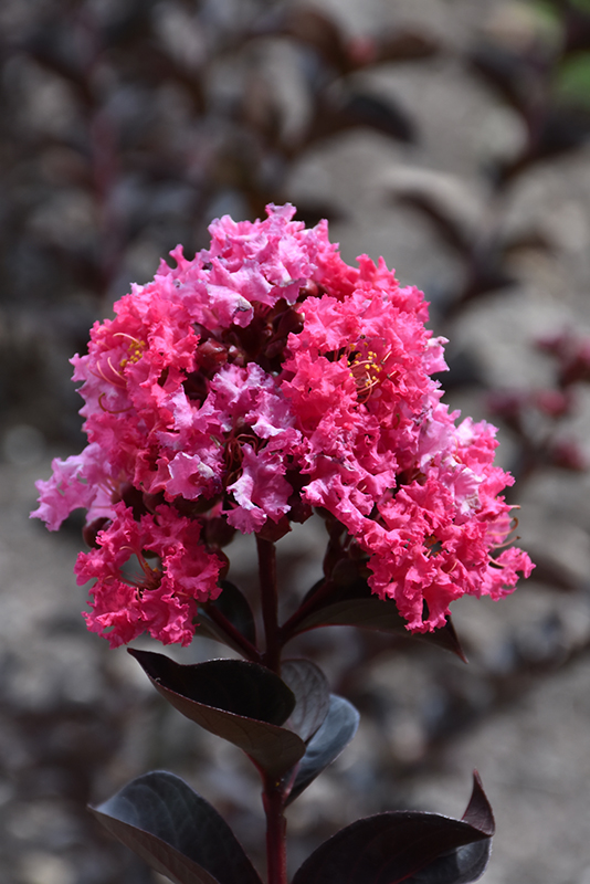 Hardiness Zone: 7a Other Names: Crape Myrtle, Crepe Myrtle Brand: Black Diamond Crapemyrtles Description: This stunning ornamental shrub is crowned with masses of frilly, vivid coral-pink blooms in summer; near black foliage emerges copper, then is followed by deep burgundy fall foliage; captivating focal point for the garden or border Ornamental Features Black Diamond® Precious Pink™ Crapemyrtle is draped in stunning panicles of hot pink frilly flowers with coral-pink overtones at the ends of the branches from early summer to early fall. It has attractive black deciduous foliage which emerges coppery-bronze in spring. The glossy oval leaves are highly ornamental and turn burgundy in fall. The smooth gray bark and ruby-red branches add an interesting dimension to the landscape. Landscape Attributes Black Diamond® Precious Pink™ Crapemyrtle is a dense multi-stemmed deciduous shrub with an upright spreading habit of growth. Its relatively fine texture sets it apart from other landscape plants with less refined foliage. This is a relatively low maintenance shrub, and is best pruned in late winter once the threat of extreme cold has passed. It has no significant negative characteristics. Black Diamond® Precious Pink™ Crapemyrtle is recommended for the following landscape applications; Planting & Growing Black Diamond® Precious Pink™ Crapemyrtle will grow to be about 12 feet tall at maturity, with a spread of 8 feet. It tends to be a little leggy, with a typical clearance of 2 feet from the ground, and is suitable for planting under power lines. It grows at a fast rate, and under ideal conditions can be expected to live for approximately 20 years. This shrub does best in full sun to partial shade. It prefers to grow in average to moist conditions, and shouldn't be allowed to dry out. It is very fussy about its soil conditions and must have rich, acidic soils to ensure success, and is subject to chlorosis (yellowing) of the foliage in alkaline soils. It is highly tolerant of urban pollution and will even thrive in inner city environments. This is a selected variety of a species not originally from North America. Black Diamond® Precious Pink™ Crapemyrtle makes a fine choice for the outdoor landscape, but it is also well-suited for use in outdoor pots and containers. Its large size and upright habit of growth lend it for use as a solitary accent, or in a composition surrounded by smaller plants around the base and those that spill over the edges. It is even sizeable enough that it can be grown alone in a suitable container. Note that when grown in a container, it may not perform exactly as indicated on the tag - this is to be expected. Also note that when growing plants in outdoor containers and baskets, they may require more frequent waterings than they would in the yard or garden.