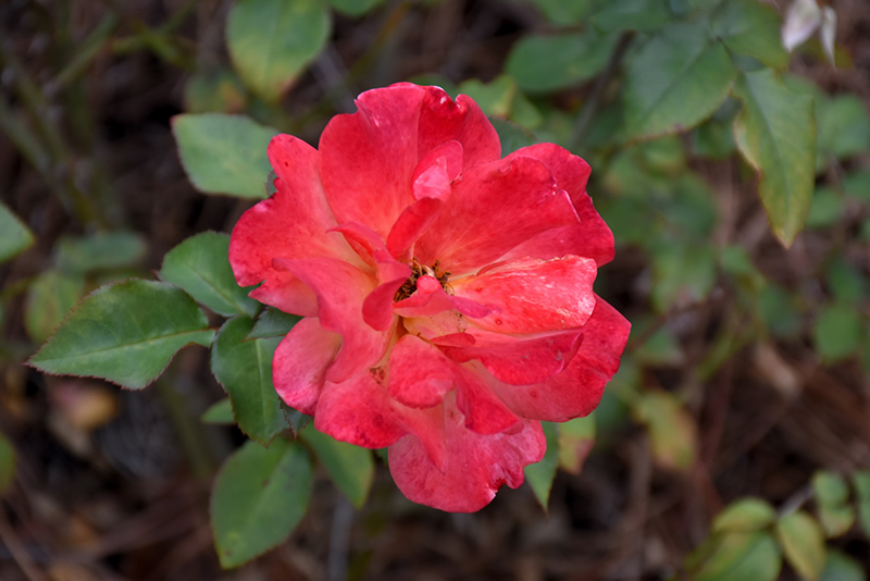 Hardiness Zone: 5b Group/Class: Floribunda Rose Description: Bushy and upright in form, this vigorous variety produces clusters of orange, yellow and scarlet blooms over lush green foliage; strong fragrance; creates tremendous impact when massed in the garden; blooms in flushes all season Ornamental Features Bengal Tiger Rose features showy clusters of fragrant double orange flowers with scarlet overtones and gold eyes at the ends of the branches from late spring to early fall. The flowers are excellent for cutting. It has green deciduous foliage. The serrated oval compound leaves do not develop any appreciable fall color. Landscape Attributes Bengal Tiger Rose is a multi-stemmed deciduous shrub with an upright spreading habit of growth. Its average texture blends into the landscape, but can be balanced by one or two finer or coarser trees or shrubs for an effective composition. This shrub will require occasional maintenance and upkeep, and is best pruned in late winter once the threat of extreme cold has passed. It is a good choice for attracting bees to your yard. Gardeners should be aware of the following characteristic(s) that may warrant special consideration; Bengal Tiger Rose is recommended for the following landscape applications; Planting & Growing Bengal Tiger Rose will grow to be about 3 feet tall at maturity extending to 4 feet tall with the flowers, with a spread of 3 feet. When grown in masses or used as a bedding plant, individual plants should be spaced approximately 3 feet apart. It tends to fill out right to the ground and therefore doesn't necessarily require facer plants in front. It grows at a fast rate, and under ideal conditions can be expected to live for approximately 30 years. This shrub should only be grown in full sunlight. It does best in average to evenly moist conditions, but will not tolerate standing water. To help this plant achive its best flowering performance, periodically apply a flower-boosting fertilizer from early spring through into the active growing season. It is not particular as to soil type or pH. It is highly tolerant of urban pollution and will even thrive in inner city environments. This particular variety is an interspecific hybrid. Bengal Tiger Rose makes a fine choice for the outdoor landscape, but it is also well-suited for use in outdoor pots and containers. With its upright habit of growth, it is best suited for use as a 'thriller' in the 'spiller-thriller-filler' container combination; plant it near the center of the pot, surrounded by smaller plants and those that spill over the edges. It is even sizeable enough that it can be grown alone in a suitable container. Note that when grown in a container, it may not perform exactly as indicated on the tag - this is to be expected. Also note that when growing plants in outdoor containers and baskets, they may require more frequent waterings than they would in the yard or garden.