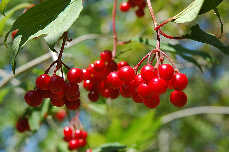 Hardiness Zone: 2a Other Names: Highbush Cranberry, Mooseberry, Moosewood Viburnum Description: A truly magnificent four-season native shrub; exquisite clusters of pure white pinwheel flowers in spring, brilliant red fruit and good fall color, golden stems; hardy and adaptable, grows quite large, an excellent specimen, makes a fine flowering screen Ornamental Features Squashberry is covered in stunning white lacecap flowers held atop the branches in late spring. It features an abundance of magnificent scarlet berries from late summer to late winter. It has dark green deciduous foliage which emerges brick red in spring. The large serrated lobed leaves turn an outstanding red in the fall. The smooth gray bark and gold branches add an interesting dimension to the landscape. This plant is primarily grown as an ornamental, but it's also valued for its edible qualities. The round tart berries are most often used in the following ways: Landscape Attributes Squashberry is a multi-stemmed deciduous shrub with an upright spreading habit of growth. Its average texture blends into the landscape, but can be balanced by one or two finer or coarser trees or shrubs for an effective composition. This is a relatively low maintenance shrub, and should only be pruned after flowering to avoid removing any of the current season's flowers. It is a good choice for attracting birds to your yard, but is not particularly attractive to deer who tend to leave it alone in favor of tastier treats. It has no significant negative characteristics. Squashberry is recommended for the following landscape applications; Planting & Growing Squashberry will grow to be about 10 feet tall at maturity, with a spread of 8 feet. It tends to be a little leggy, with a typical clearance of 2 feet from the ground, and is suitable for planting under power lines. It grows at a medium rate, and under ideal conditions can be expected to live for 40 years or more. While it is considered to be somewhat self-pollinating, it tends to set heavier quantities of fruit with a different variety of the same species growing nearby. This shrub does best in full sun to partial shade. It prefers to grow in average to moist conditions, and shouldn't be allowed to dry out. It is not particular as to soil type or pH. It is highly tolerant of urban pollution and will even thrive in inner city environments. This species is native to parts of North America.