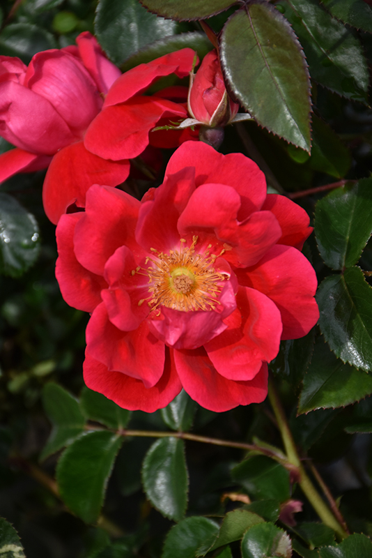 Hardiness Zone: 4a Group/Class: Shrub Rose Brand: Monrovia Description: A vigorous, fuss-free shrub clothed with stunning deep pink blooms all season, even in the heat of summer; self cleaning and resistant to disease; ideal as a low flowering hedge; all roses need full sun and well-drained soil Ornamental Features Grace N' Grit™ Pink Rose is blanketed in stunning fragrant double pink flowers at the ends of the branches from early summer to mid fall. The flowers are excellent for cutting. It has dark green deciduous foliage. The oval compound leaves turn an outstanding red in the fall. The spiny brick red bark adds an interesting dimension to the landscape. Landscape Attributes Grace N' Grit™ Pink Rose is a multi-stemmed deciduous shrub with an upright spreading habit of growth. Its average texture blends into the landscape, but can be balanced by one or two finer or coarser trees or shrubs for an effective composition. This is a high maintenance shrub that will require regular care and upkeep, and is best pruned in late winter once the threat of extreme cold has passed. Gardeners should be aware of the following characteristic(s) that may warrant special consideration; Grace N' Grit™ Pink Rose is recommended for the following landscape applications; Planting & Growing Grace N' Grit™ Pink Rose will grow to be about 5 feet tall at maturity, with a spread of 4 feet. It tends to fill out right to the ground and therefore doesn't necessarily require facer plants in front, and is suitable for planting under power lines. It grows at a fast rate, and under ideal conditions can be expected to live for approximately 20 years. This shrub should only be grown in full sunlight. It does best in average to evenly moist conditions, but will not tolerate standing water. It is not particular as to soil type or pH. It is somewhat tolerant of urban pollution. This particular variety is an interspecific hybrid.