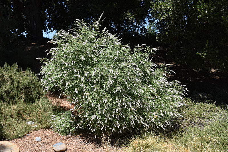 Hardiness Zone: 7a Description: A large shrub or small tree featuring amazing spikes of white flowers in summer to early autumn; distinctively palmate-leaves; can be treated like a perennial and cut back each spring, as it flowers on new wood and regrows vigorously Ornamental Features Silver Spire Chaste Tree is bathed in stunning panicles of lightly-scented white flowers rising above the foliage from mid summer to early fall. It has green foliage with hints of silver. The fragrant palmate leaves do not develop any appreciable fall color. Landscape Attributes Silver Spire Chaste Tree is an open multi-stemmed deciduous shrub with an upright spreading habit of growth. Its relatively fine texture sets it apart from other landscape plants with less refined foliage. This shrub will require occasional maintenance and upkeep, and is best pruned in late winter once the threat of extreme cold has passed. It is a good choice for attracting bees and butterflies to your yard. It has no significant negative characteristics. Silver Spire Chaste Tree is recommended for the following landscape applications; Planting & Growing Silver Spire Chaste Tree will grow to be about 15 feet tall at maturity, with a spread of 15 feet. It tends to be a little leggy, with a typical clearance of 1 foot from the ground, and is suitable for planting under power lines. It grows at a fast rate, and under ideal conditions can be expected to live for 50 years or more. This shrub does best in full sun to partial shade. It is very adaptable to both dry and moist locations, and should do just fine under average home landscape conditions. It is considered to be drought-tolerant, and thus makes an ideal choice for xeriscaping or the moisture-conserving landscape. This plant should not require much in the way of fertilizing once established, although it may appreciate a shot of general-purpose fertilizer from time to time early in the growing season. It is not particular as to soil type or pH, and is able to handle environmental salt. It is highly tolerant of urban pollution and will even thrive in inner city environments, and will benefit from being planted in a relatively sheltered location. This is a selected variety of a species not originally from North America.