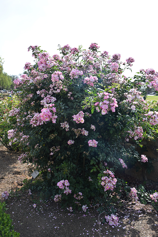 Hardiness Zone: 6b Group/Class: Hybrid Musk Rose Description: Lovely, large clusters of semi-double, light pink blooms with cream centers have a moderate fragrance; bushy, upright, and thornless, it can be trained as a climber; occasional repeat bloomer later in the season; makes a stunning visual impact Ornamental Features Ausonius Rose features showy lightly-scented semi-double pink flowers with gold eyes and white centers at the ends of the branches from late spring to mid fall. The flowers are excellent for cutting. It has dark green deciduous foliage. The glossy oval compound leaves do not develop any appreciable fall color. The fruits are showy orange hips displayed from mid fall to early winter. Landscape Attributes Ausonius Rose is a multi-stemmed deciduous shrub with an upright spreading habit of growth. Its average texture blends into the landscape, but can be balanced by one or two finer or coarser trees or shrubs for an effective composition. This shrub will require occasional maintenance and upkeep, and is best pruned in late winter once the threat of extreme cold has passed. It is a good choice for attracting bees to your yard. It has no significant negative characteristics. Ausonius Rose is recommended for the following landscape applications; Planting & Growing Ausonius Rose will grow to be about 7 feet tall at maturity, with a spread of 4 feet. It has a low canopy with a typical clearance of 1 foot from the ground, and is suitable for planting under power lines. It grows at a fast rate, and under ideal conditions can be expected to live for approximately 30 years. This shrub does best in full sun to partial shade. It does best in average to evenly moist conditions, but will not tolerate standing water. To help this plant achive its best flowering performance, periodically apply a flower-boosting fertilizer from early spring through into the active growing season. It is not particular as to soil type or pH. It is highly tolerant of urban pollution and will even thrive in inner city environments. This particular variety is an interspecific hybrid.